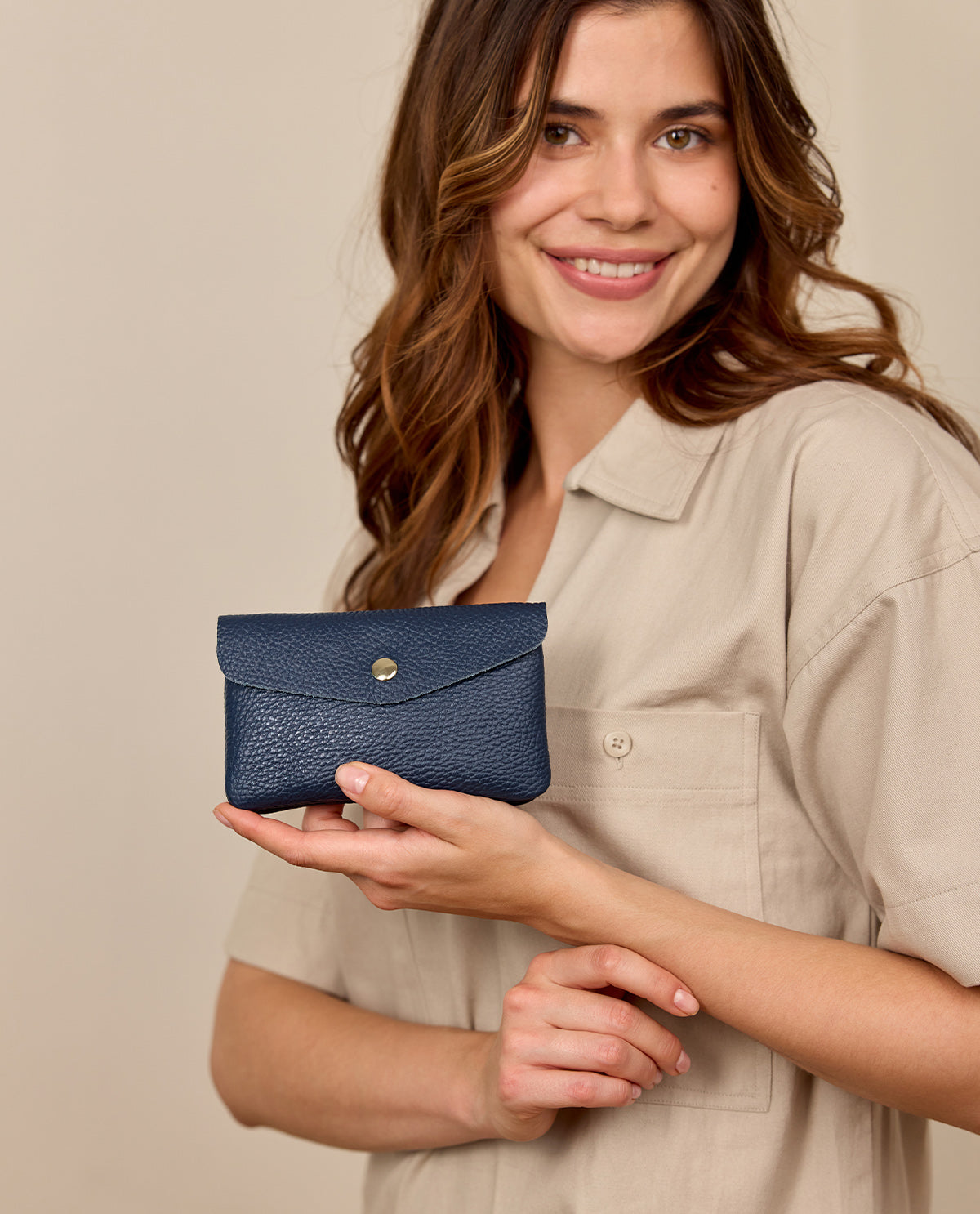 Il design ben studiato della "Anela" garantisce la massima chiarezza. La borsa è divisa in due scomparti principali che offrono spazio sufficiente per le tue carte, banconote o ricevute. Una tasca con cerniera aggiuntiva garantisce la conservazione sicura di oggetti più piccoli. Il logo Gusti in rilievo e il marchio "Made in Italy" all'interno sottolineano la qualità e il design elegante. Con la "Anela" hai una soluzione compatta e pratica per conservare i tuoi oggetti importanti in modo sicuro ed elegante.