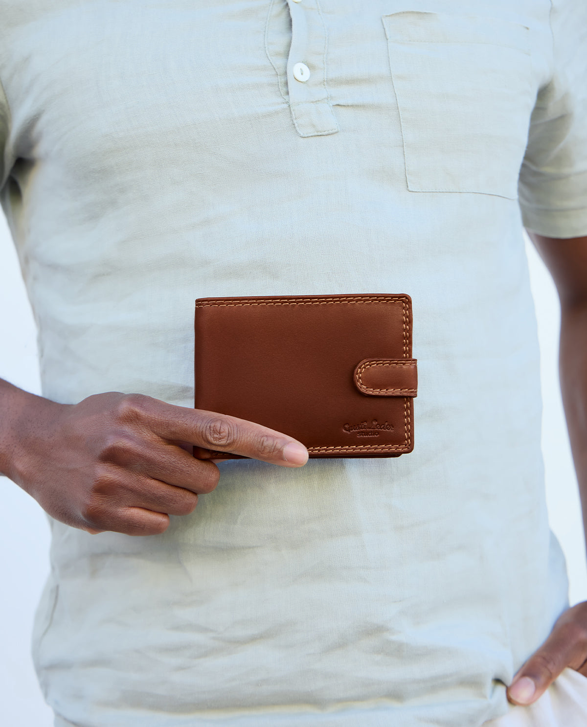 Lo scomparto per le monete ha anche uno slot separato per una moneta da 1 euro, perfetto quando hai fretta. La protezione RFID integrata ti tiene al sicuro, impedendo a chi non dovrebbe di leggere i dati della tua carta. Così, "Gustav" non solo ti accompagna con stile e affidabilità nella vita di tutti i giorni, ma ti offre anche le più moderne funzioni di protezione in un formato compatto.