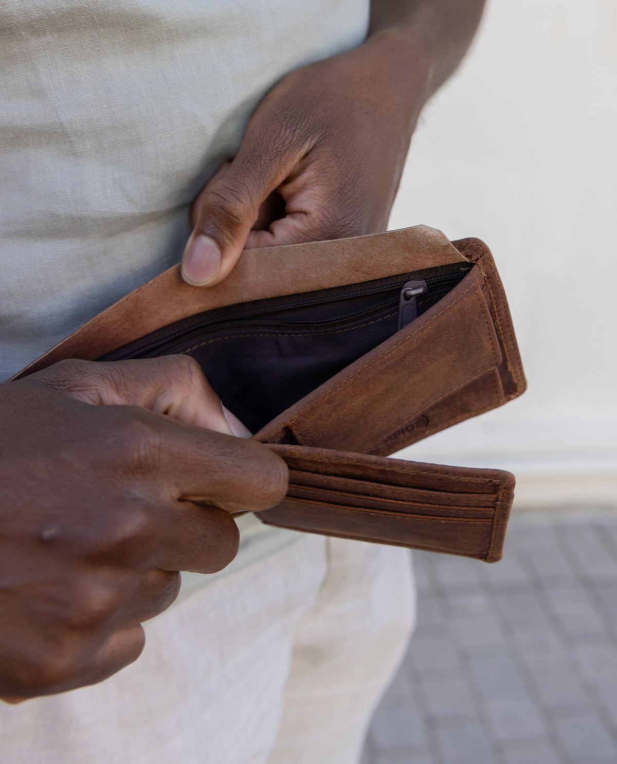 Portafoglio con Tasca Nascosta per Monete e Protezione RFID