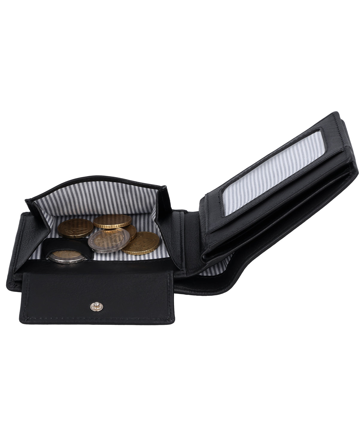 Il nostro portafoglio "Foster" ha un look classico e, grazie alla protezione RFID, è un compagno affidabile che protegge le tue carte da letture indesiderate. Realizzato in robusta pelle bovina, "Foster" è un compagno per tutta la vita. Una volta aperto, troverai almeno sei scomparti per le tue carte di credito. Puoi riporre la tua carta d'identità in uno scomparto trasparente. In uno scomparto separato puoi mettere le tue banconote e, naturalmente, è incluso anche uno scomparto per le monete, così i tuoi spiccioli non finiranno più in giro nella tua borsa. Questo scomparto si chiude in modo sicuro con un bottone a pressione. Inoltre, uno scomparto integrato per le monete ti permette di avere ancora più ordine tra i tuoi spiccioli.