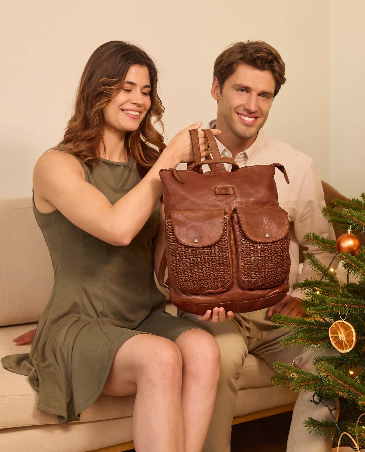 Lo zaino "Aileen" combina funzionalità con un design moderno e senza tempo ed è realizzato in pelle di alta qualità lavata, che gli conferisce un autentico look vintage. Ispirato dal vivace fascino metropolitano di Berlino, questo zaino ti accompagna con stile ad ogni passo – sia nella vita quotidiana, in viaggio o al lavoro. La sua robusta lavorazione ti garantisce durata, mentre il design studiato assicura un aspetto elegante. Inoltre, "Aileen" dispone di un scomparto AirTag integrato, così puoi localizzare facilmente il tuo zaino in qualsiasi momento.