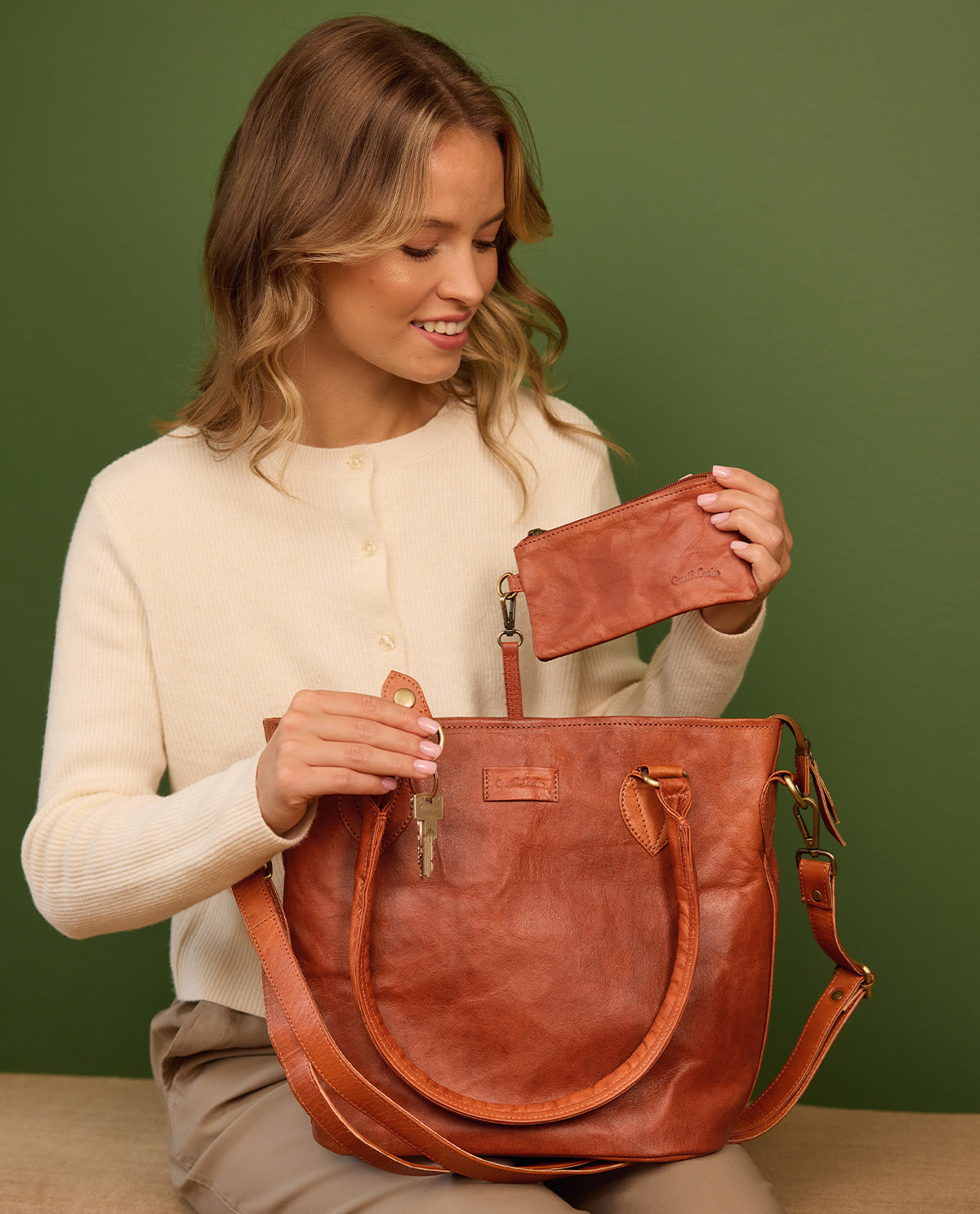 Grazie a funzionalità pensate come una tasca per il cellulare, un portapenne, una tasca segreta per AirTag e un portachiavi, tutto rimane al suo posto. Due scomparti separati con cerniera e un piccolo astuccio rimovibile offrono spazio aggiuntivo per i tuoi oggetti essenziali. "Therese New" offre abbastanza spazio per il tuo laptop, raccoglitore, astuccio, portafoglio e altro ancora. La sua disposizione interna ben studiata assicura che tu abbia tutto a portata di mano anche in situazioni frenetiche.