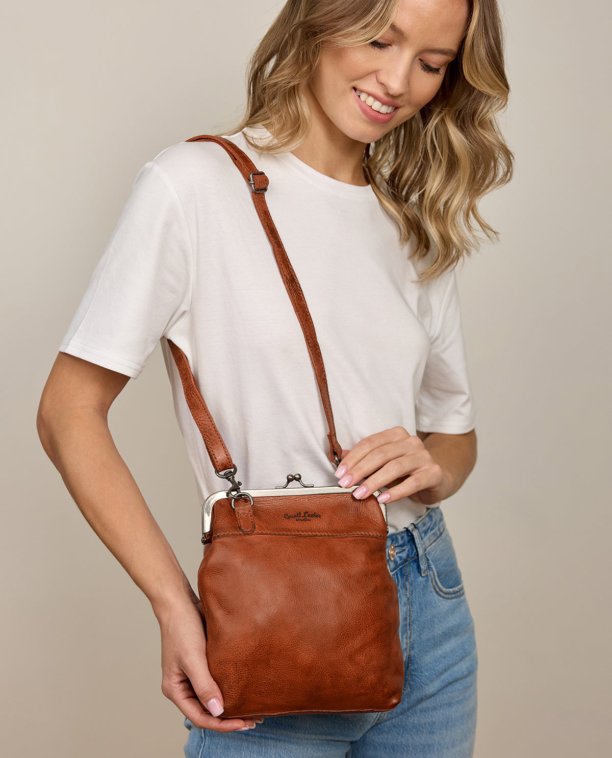 Ti piace essere alla mano, ma con un tocco di originalità? Casualità con un pizzico di fascino? Permettici di presentarti "Karlotta"! La tua nuova borsa in stile portafoglio. Per un tocco extra di retrò nella tua vita quotidiana – prova "Karlotta", ispirata dal fascino della grande città di Berlino. Porta stile urbano e funzionalità nella tua vita, sia durante una passeggiata che mentre fai shopping in città. All'interno, la borsa si distingue per un grande scomparto principale e una chiusura in metallo retrò. Così i tuoi effetti personali non cadranno e saranno ben protetti. Il robusto cuoio di bovino completa il design. Qui trovano posto quaderni, cellulare, rossetto e portafoglio.