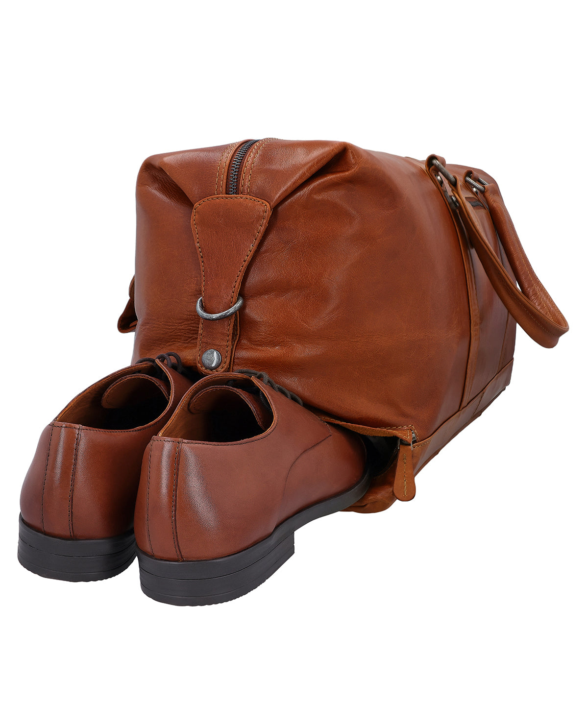 Una borsa da viaggio elegante in pelle con tanto spazio