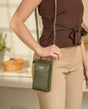 Borsa per cellulare Borsa a tracolla in pelle Borsa a spalla Donne Verde Pelle