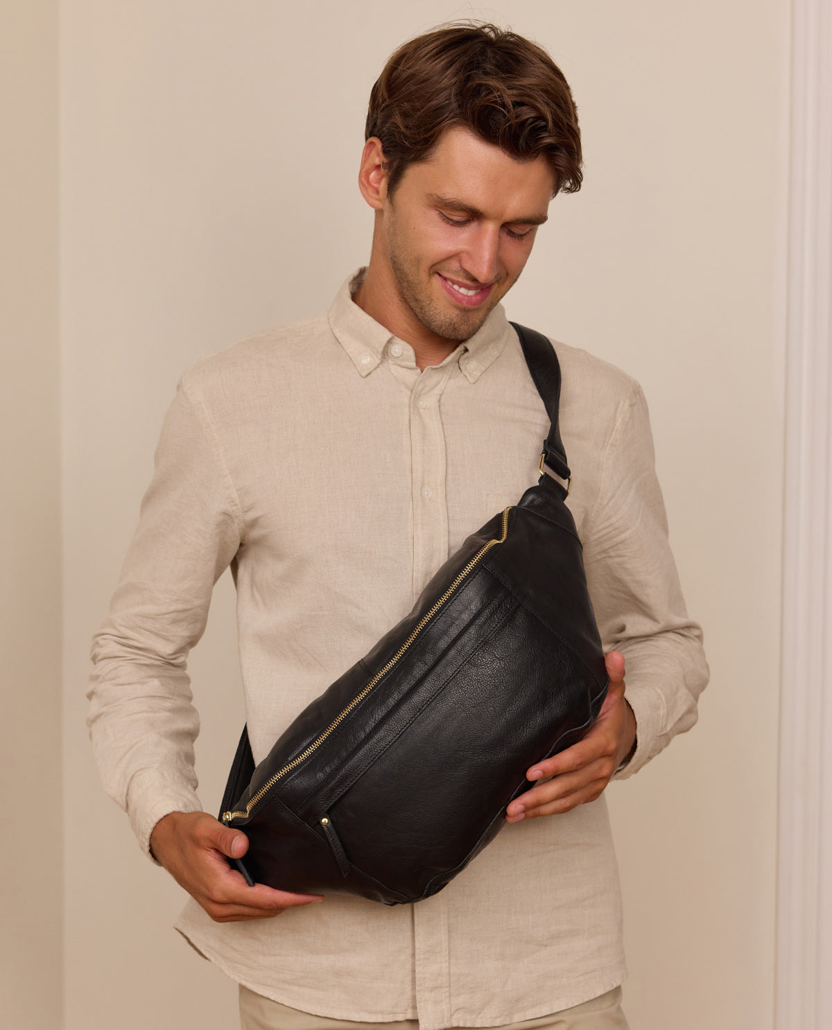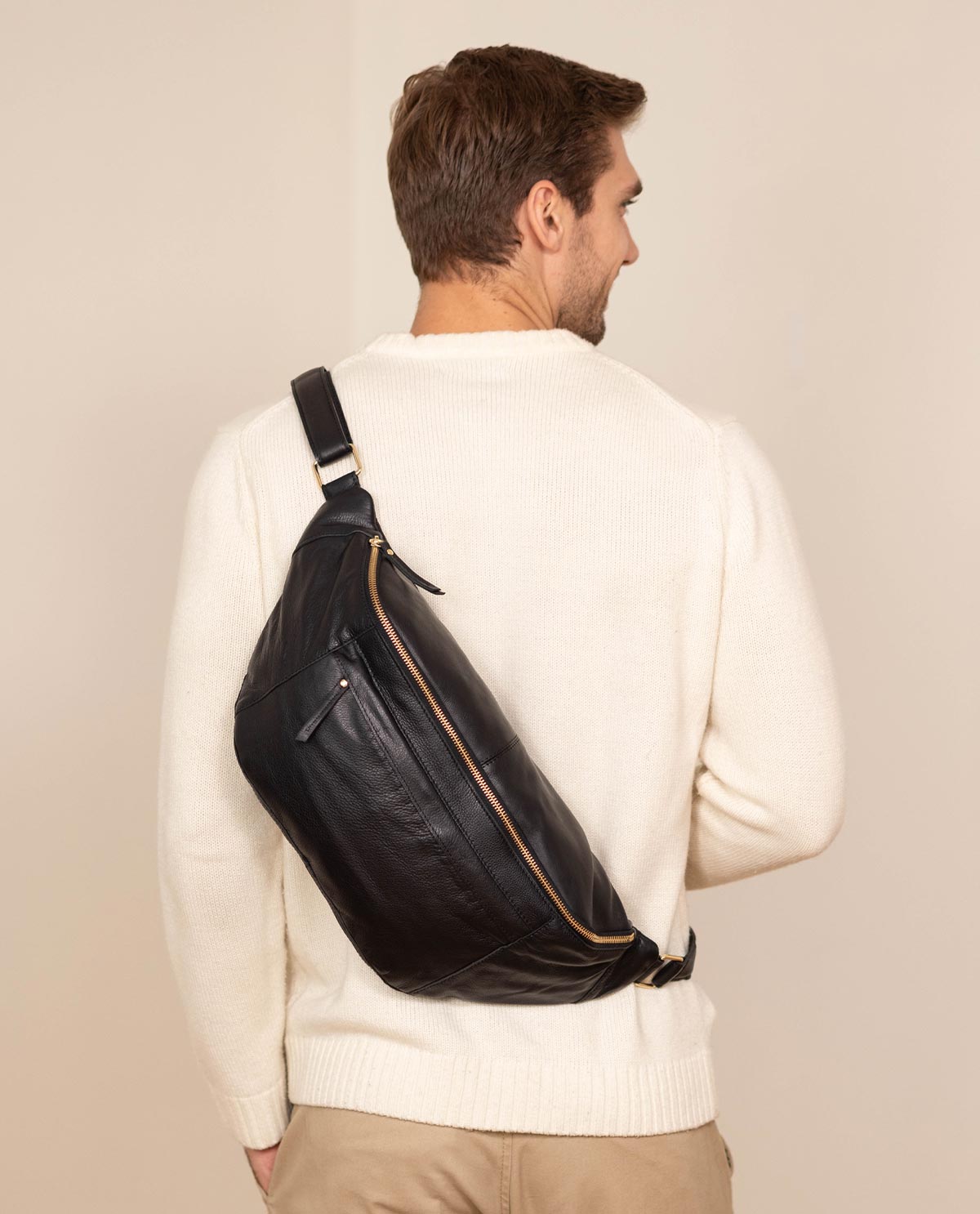 Perché questa capiente borsa in resistente pelle di bufalo nel formato di un grande marsupio combina tutti i vantaggi di uno zaino compatto con lo stile casual-cool del bellybag - non da ultimo grazie alla piacevole morbidezza della pelle e al chic delle cerniere dorate. In questo modo, "Esben" può accompagnarti ovunque, senza dover rinunciare ai tuoi oggetti preferiti o a un look cool. Infatti, "Esben" offre sempre abbastanza spazio per il tuo smartphone, chiavi e portafoglio, agenda, astuccio e molto altro ancora!