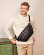 Marsupio borsa da cintura borsa per festival party concerti in vera pelle nera