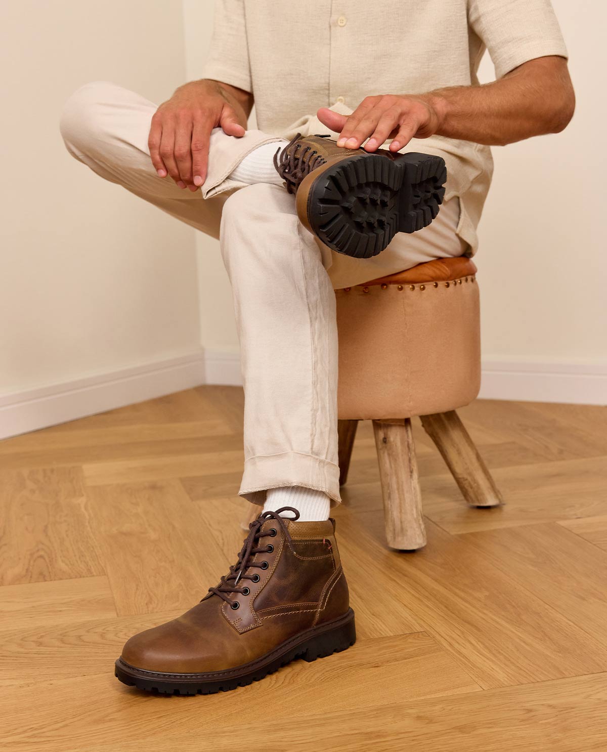 All'interno, "Oberon" convince con una fodera in tessuto a quadri e una combinazione di inserti in pelle e stoffa, che garantiscono traspirabilità e comfort. La soletta in pelle bovina offre una sensazione di camminata piacevole, mentre la suola in poliuretano combina flessibilità e stabilità – ideale per lunghe giornate in piedi. Un logo Gusti Pelle impresso sul tallone sottolinea la lavorazione di alta qualità e lo stile senza tempo. Con "Oberon" goditi una scarpa che unisce eleganza, comfort e qualità artigianale in perfetta armonia – per l'uomo moderno con un senso dello stile.