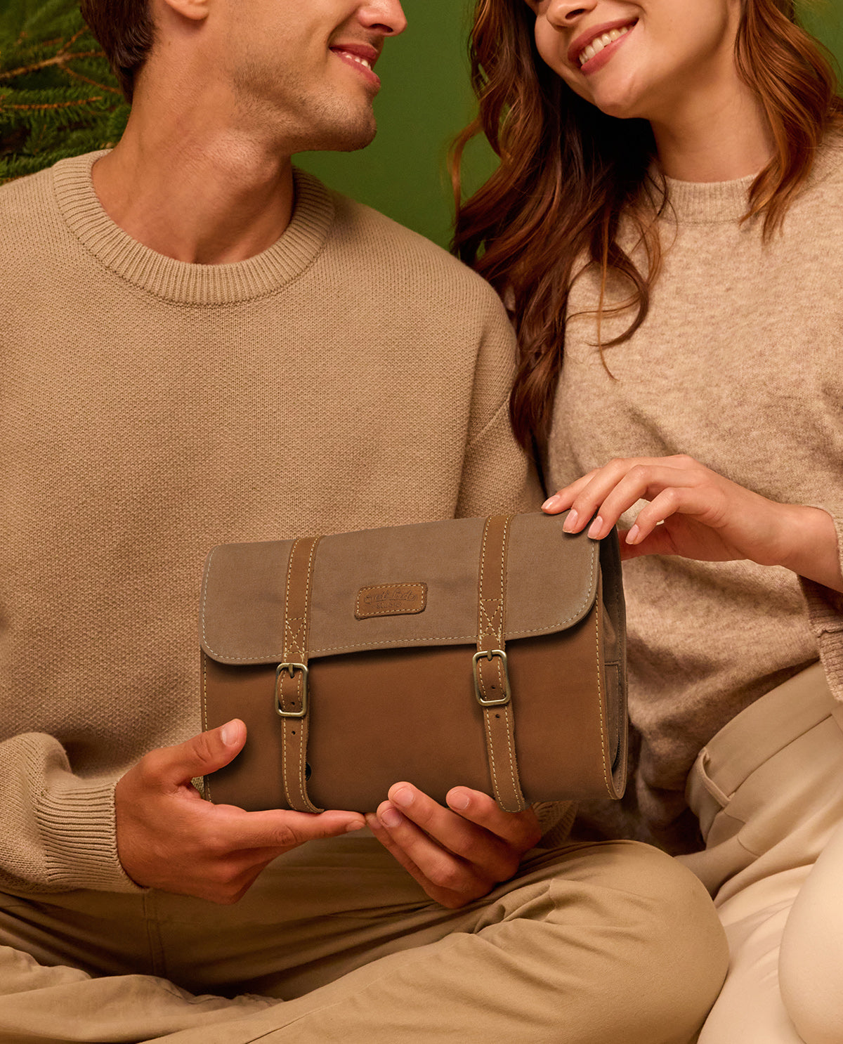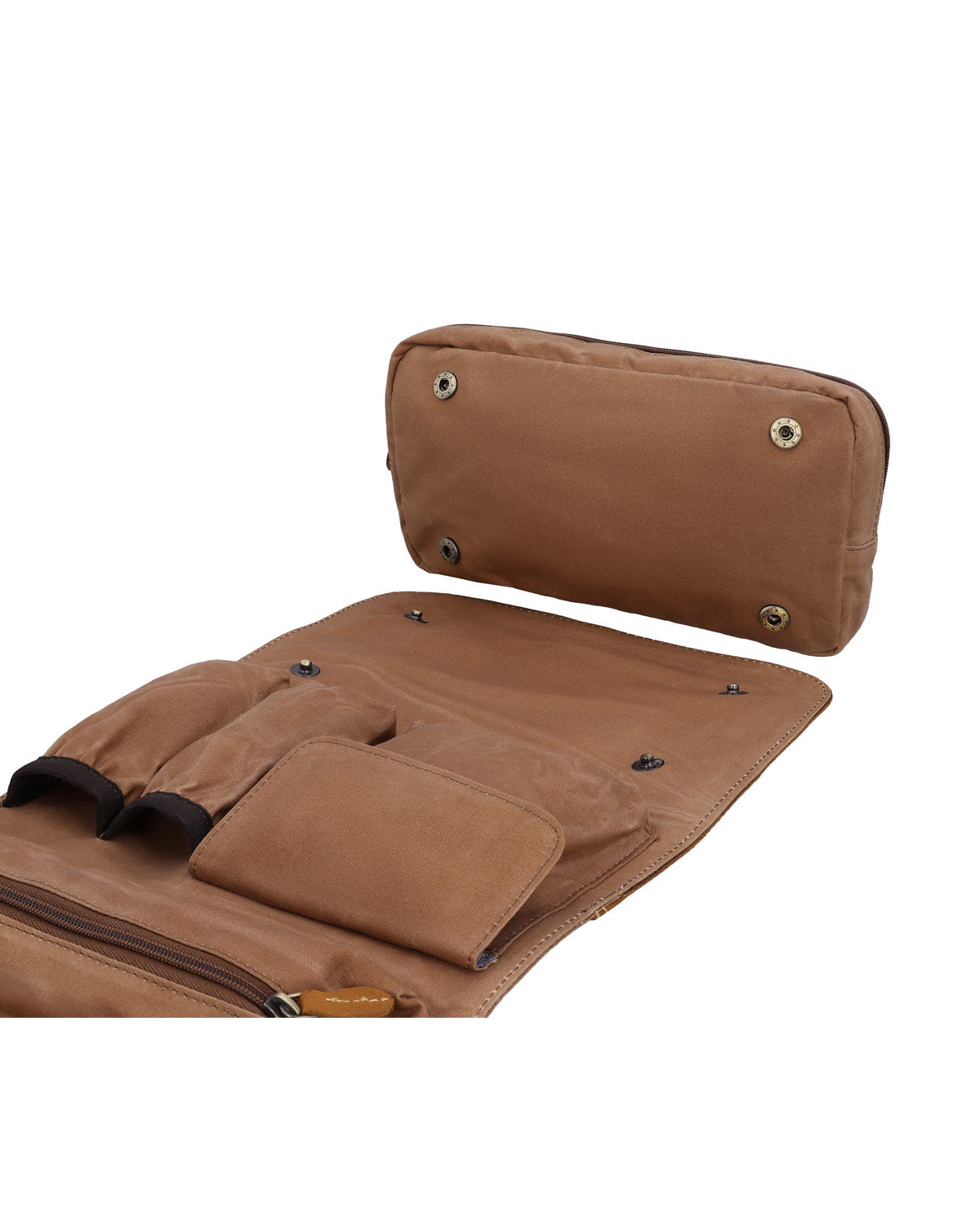 Una volta aperto, arriva la grande meraviglia. Con "Rodney" si è pensato davvero a tutto: è realizzato con un mix di materiali di alta qualità, tra tela e pelle di bufalo. All'interno ha vari scomparti di diverse dimensioni e formati per il tuo spazzolino, shampoo, spazzola, accessori per la rasatura, cosmetici e molto altro.Il tessuto interno in policotone impermeabile previene piccoli incidenti causati da bottiglie di shampoo fuoriuscite. Il robusto gancio in metallo consente inoltre di appendere facilmente "Rodney" alla tua parete. Le fibbie regolabili e i bottoni a pressione completano il design. Beauty case "Rodney" - un vero creatore di tranquillità!
