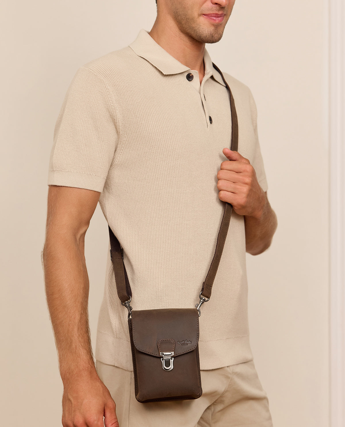Borsa a Cintura Borsa da Pancia Borsa a Tracolla Marrone Noce Pelle