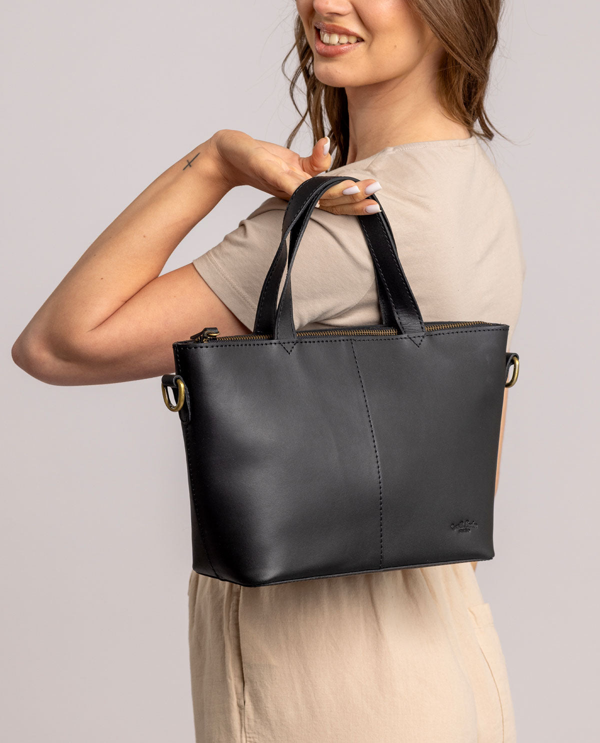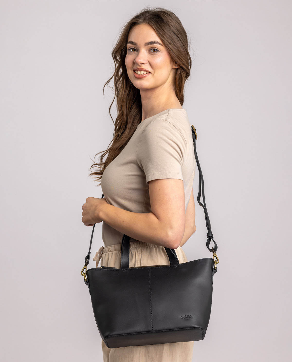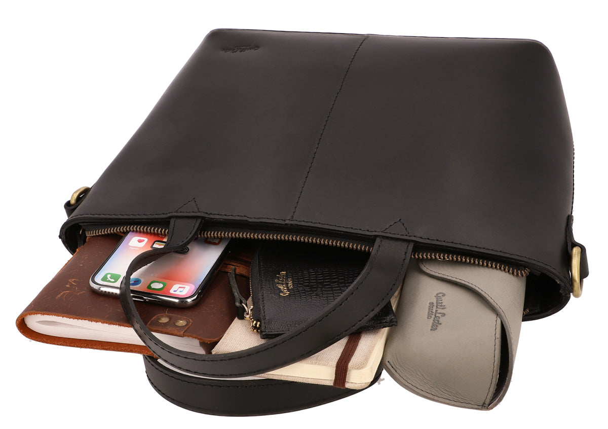 La borsa di Gusti Leder è realizzata in pelle di prima qualità. Il materiale di alta qualità non solo si distingue per la sua durata, ma conferisce anche alla borsa un aspetto elegante. La pelle nera si armonizza perfettamente con diversi outfit e si adatta sia a stili eleganti che casual.