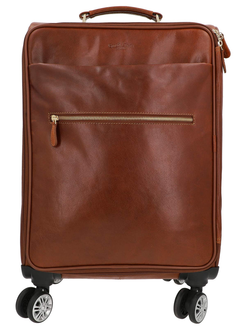 Dotato di ruote robuste e di un manico estraibile, il trolley garantisce un trasporto senza sforzo, anche su lunghe distanze. L'interno ben studiato offre una suddivisione intelligente, così puoi rimanere sempre organizzato. Grazie al suo design classico e alla lavorazione di alta qualità, il trolley da viaggio in pelle marrone "Asia" ti accompagna con stile in tutti i tuoi viaggi, sia d'affari che privati.