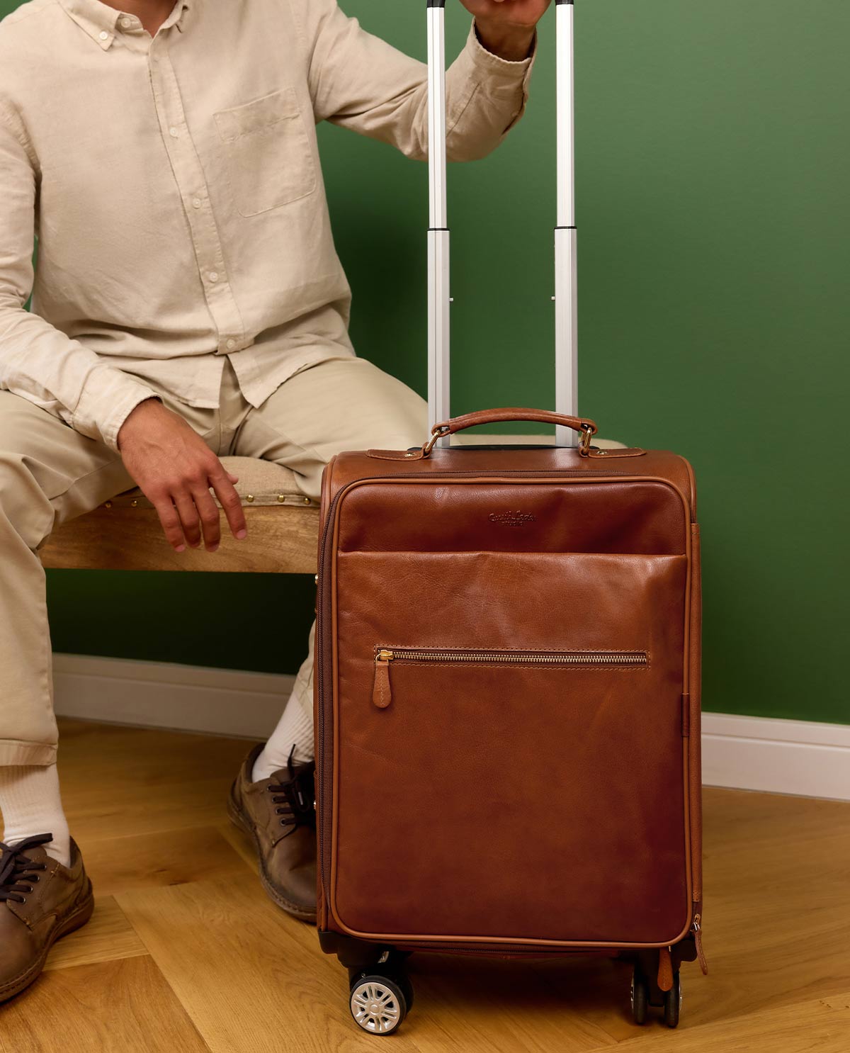 Il trolley da viaggio "Asia" unisce stile, comfort e funzionalità in modo inconfondibile. La sua pelle marrone scuro sviluppa nel tempo una patina unica che gli conferisce un carattere speciale. Ispirato da Berlino, questo trolley è stato concepito per viaggiatori esigenti come te. Che sia un viaggio d'affari, una gita nel weekend o una vacanza più lunga, ti offre ampio spazio e un look lussuoso ma discreto.