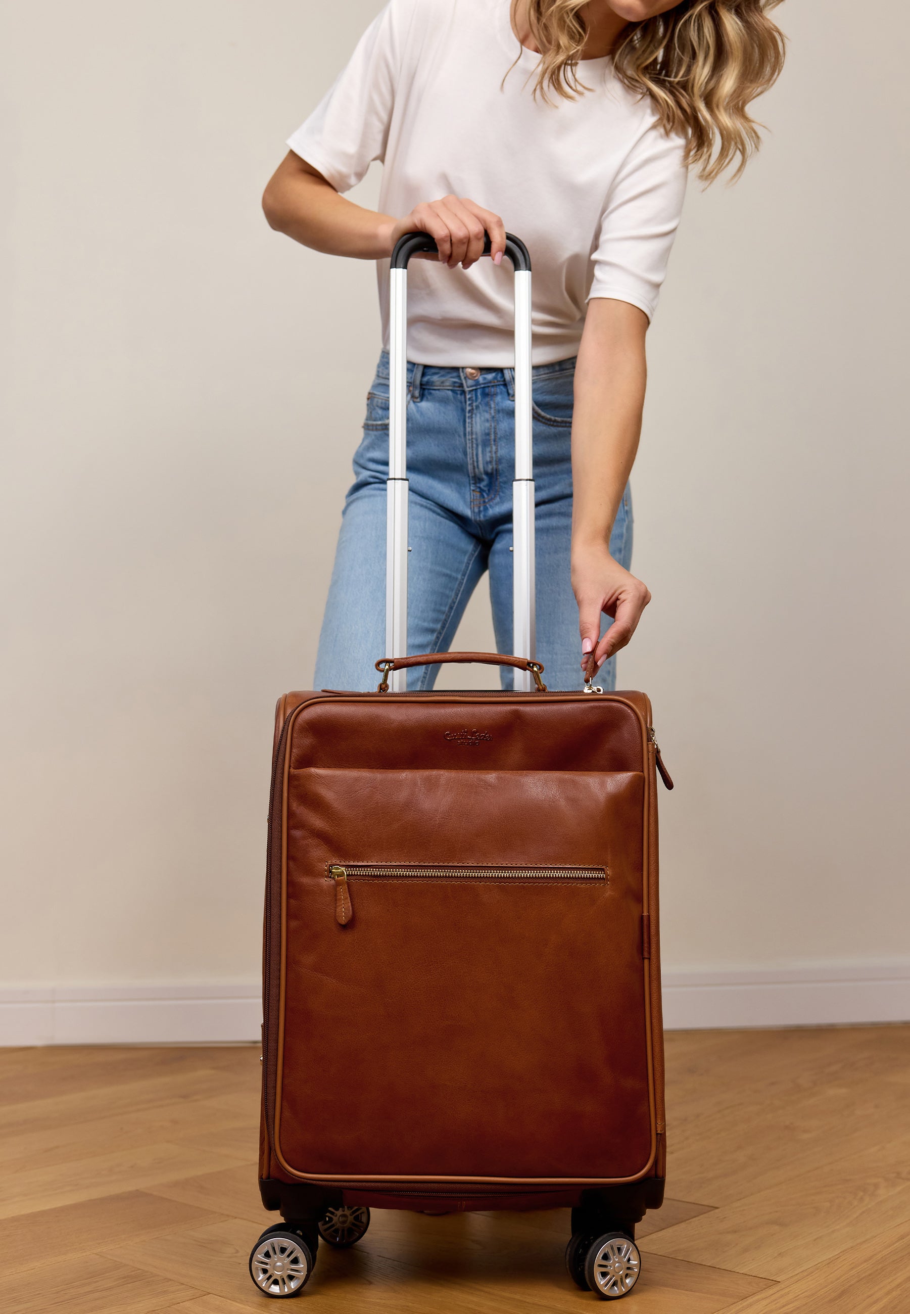 Trolley da viaggio in pelle marrone "Asia" per donne e uomini