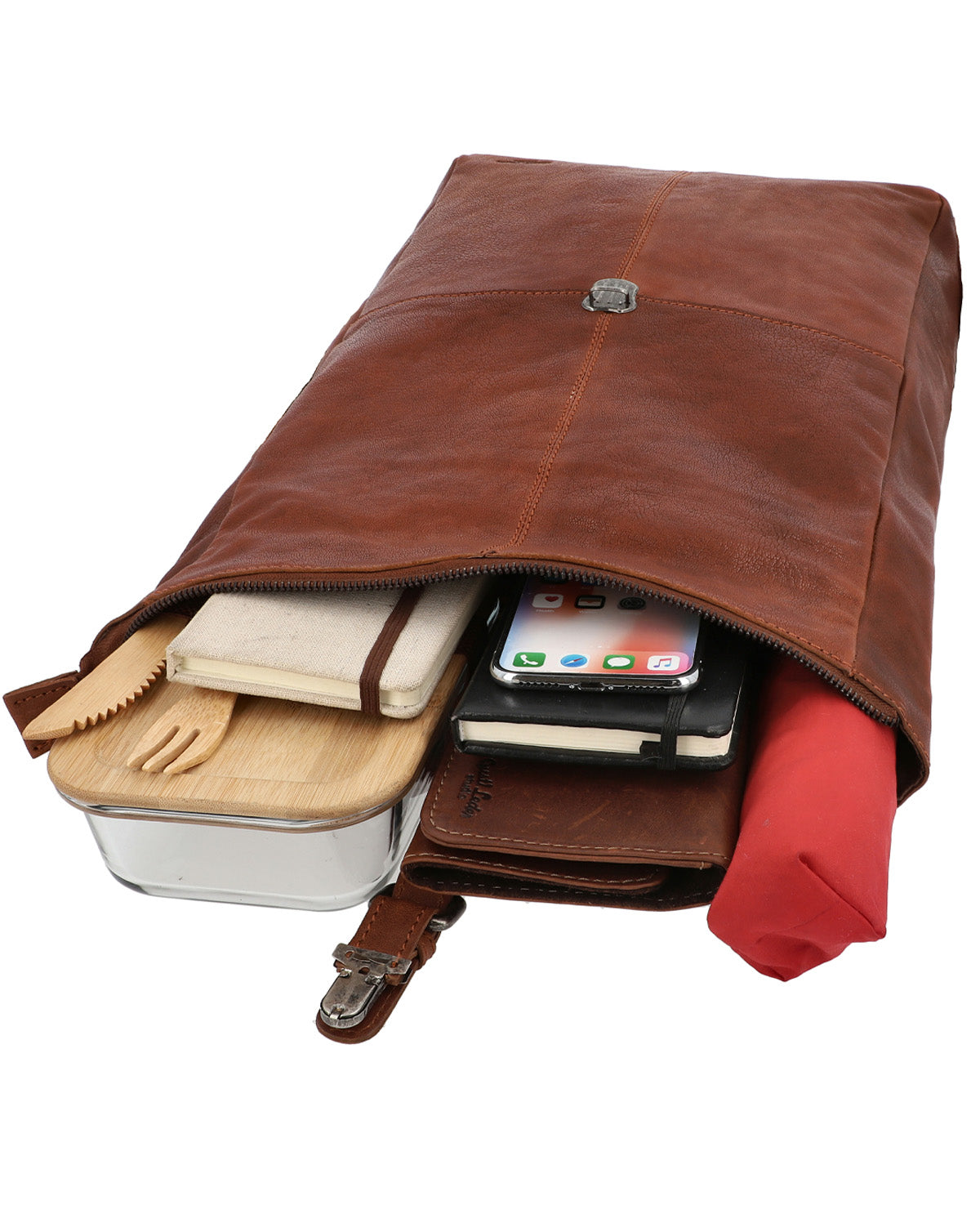 Anche se "Valja" contiene solo circa 9 litri, offre abbastanza spazio grazie alla pelle di capra di alta qualità per vari quaderni, portafoglio, astuccio e provviste. Una piccola tasca segreta sul retro, chiudibile con cerniera, garantisce ulteriore sicurezza. La chiusura a scatto in metallo completa il design e protegge i tuoi beni in modo affidabile da vento, intemperie e polvere. Un fedele compagno per il tuo perfetto look vintage.