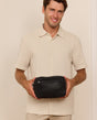 Mit „Carmina“ hast Du eine elegante und praktische Kulturtasche, die Deine Pflegeprodukte sicher verstaut – egal ob auf Reisen oder zuhause. Hergestellt aus hochwertigem schwarzem Leder, überzeugt sie mit zeitlosem Design und robuster Verarbeitung. Das geräumige Hauptfach bietet ausreichend Platz für Deine Essentials, während das extra Seitenfach ideal für kleinere Gegenstände wie Rasierer oder Zahnbürste ist. Ob für Herren oder Damen – "Carmina" vereint Stil und Funktionalität in einer kompakten Form, die sich mühelos in Deinem Gepäck verstauen lässt. Perfekt für alle, die auf Reisen nicht auf Eleganz verzichten möchten.