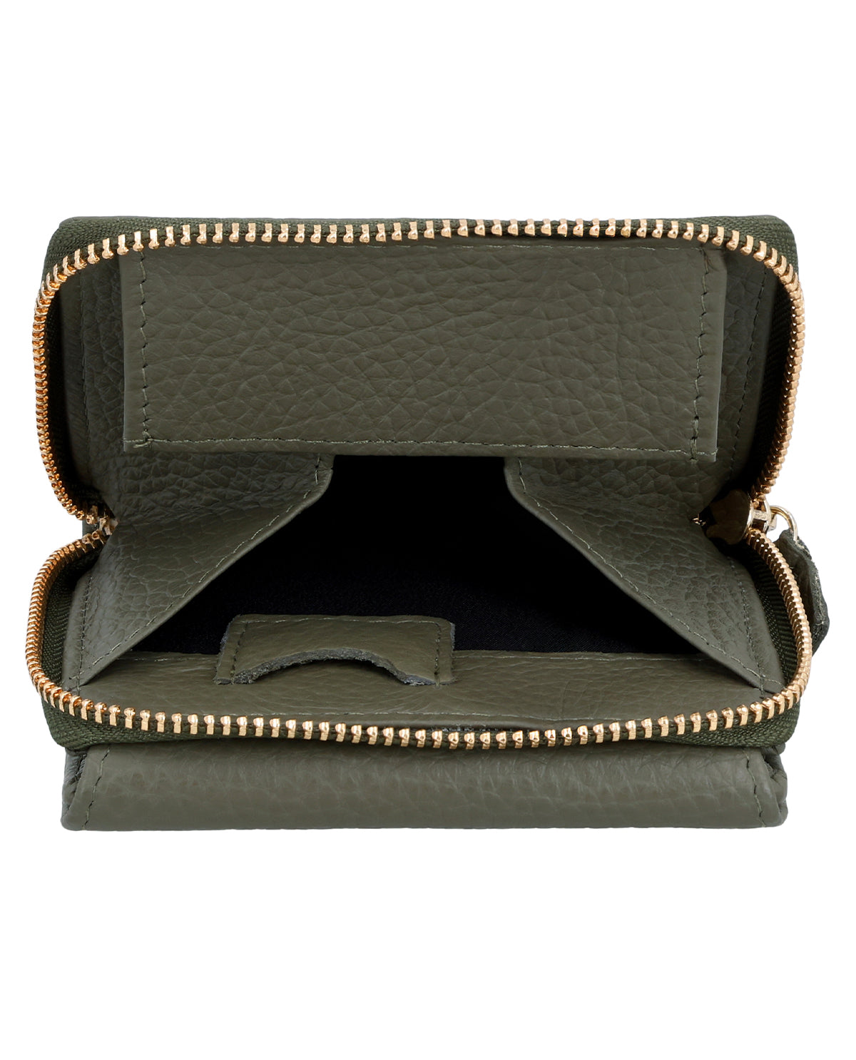 Im Inneren verfügt „Brigitta" über ein Geldscheinfach, ein ausklappbares Sichtfenster, Platz für bis zu 6 Karten und ein separates Münzfach, welches per Reißverschluss abgeschlossen wird. Im Münzfach findest Du außerdem einen extra Steckplatz für eine 1-€-Münze, ideal für Einkaufswagen oder Schließfächer. So purzelt nichts ungehindert in die Tasche. Aus hochwertig verarbeitetem Rindsleder wird das Portemonnaie mithilfe eines Druckknopfs verschlossen. Ab in die Tasche – es kann losgehen mit Brieftasche „Brigitta"!