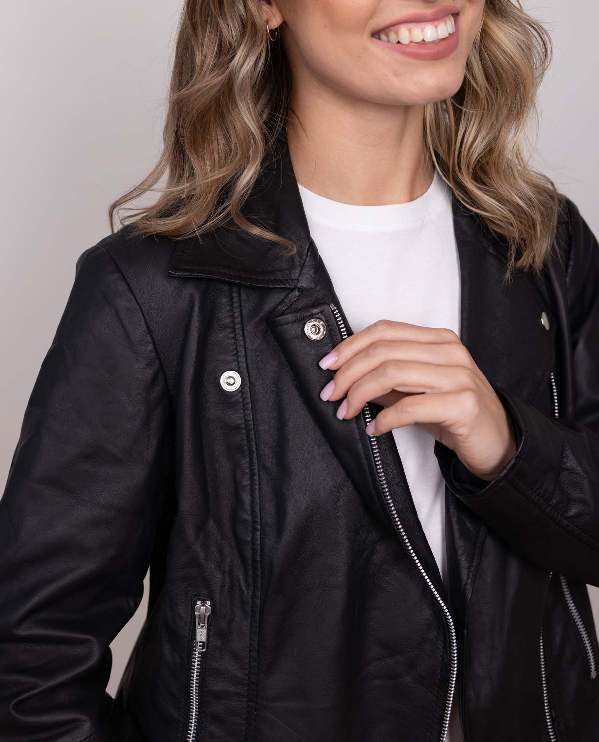 Lederjacke Bikerjacke Jacke Echtleder Damen Schwarz Leder