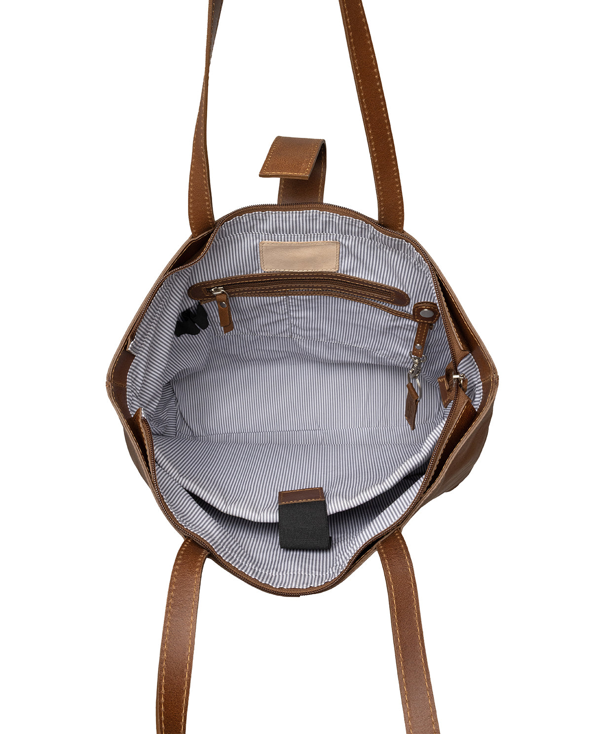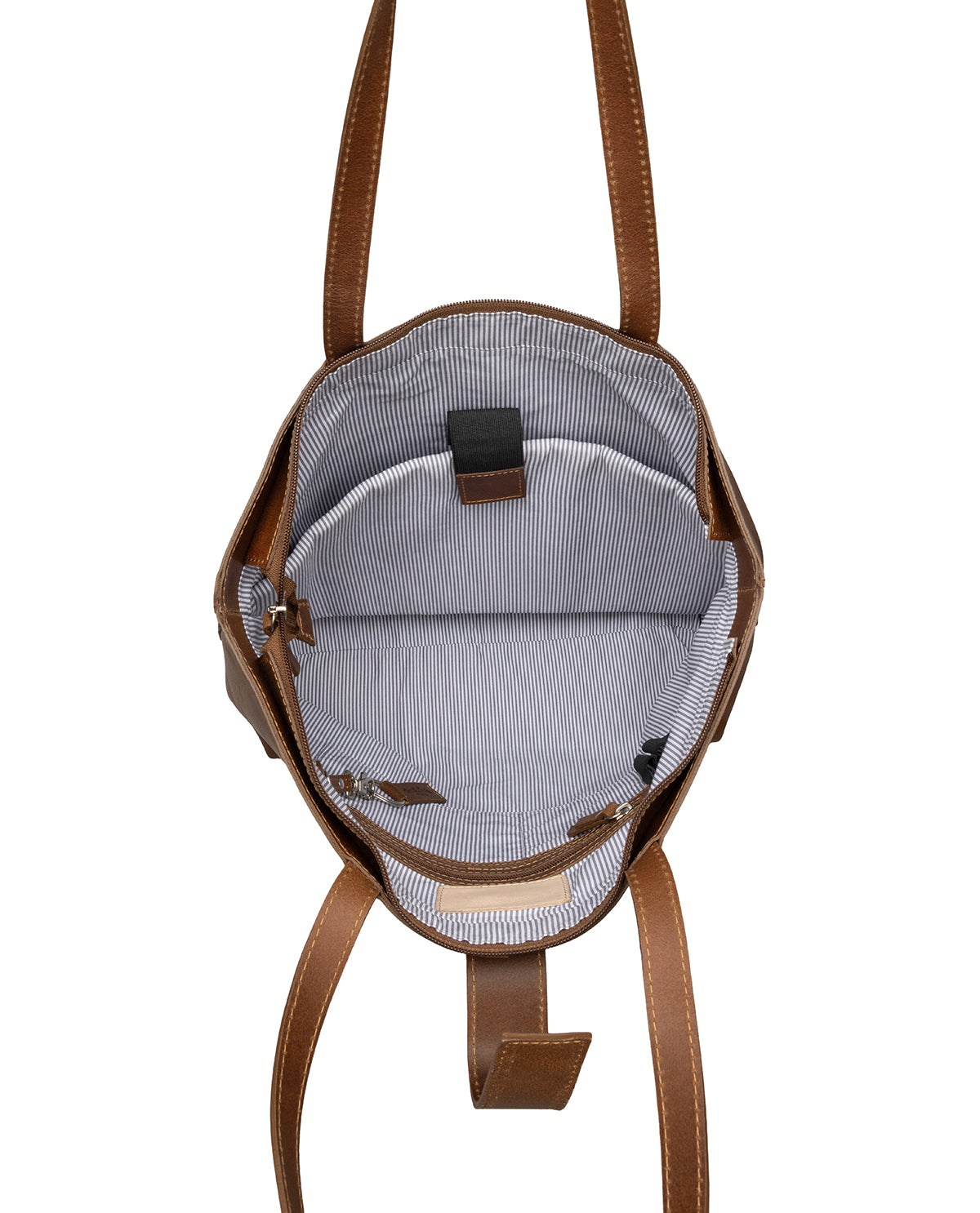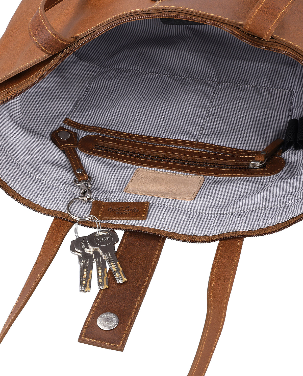 Die praktischen Innenfächer bieten die Möglichkeit, Kleinigkeiten wie Handy und Schlüssel schnell zu verstauen, ohne die ganze Tasche durchsuchen zu müssen. Die "Alexandra" bietet Platz für Geräte bis 15", Ordner, Geldbeutel, Make-up und Einkäufe – einfach alles, was Du im Alltag benötigst. Mit ihrer einzigartigen Größe und dem stabilen Echtleder ist sie nicht nur ein praktischer, sondern auch ein stilvoller Begleiter für jedes Abenteuer, das der Tag für Dich bereithält.