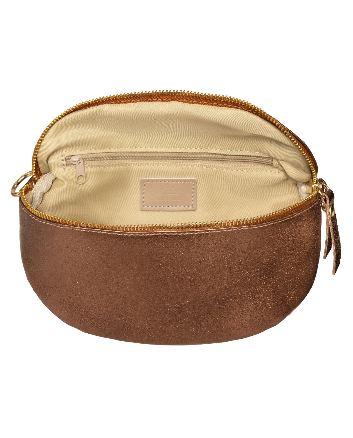 Die "Brinja" Umhängetasche besticht durch ihr elegantes Design und ihre hohe Funktionalität. Mit der markanten, halbrunden Silhouette und dem vollständigen Reißverschluss entlang des oberen Randes bietet sie nicht nur ausreichend Platz für Deine Essentials, sondern auch Sicherheit für all Deine persönlichen Gegenstände. Das hochwertige Leder verleiht ihr eine edle Optik, die sich perfekt in Deinen modernen Alltag einfügt. Im Inneren findest Du zudem das fein eingeprägte "Made in Italy"-Logo, das die Herkunft und Qualität dieser Tasche eindrucksvoll unterstreicht.