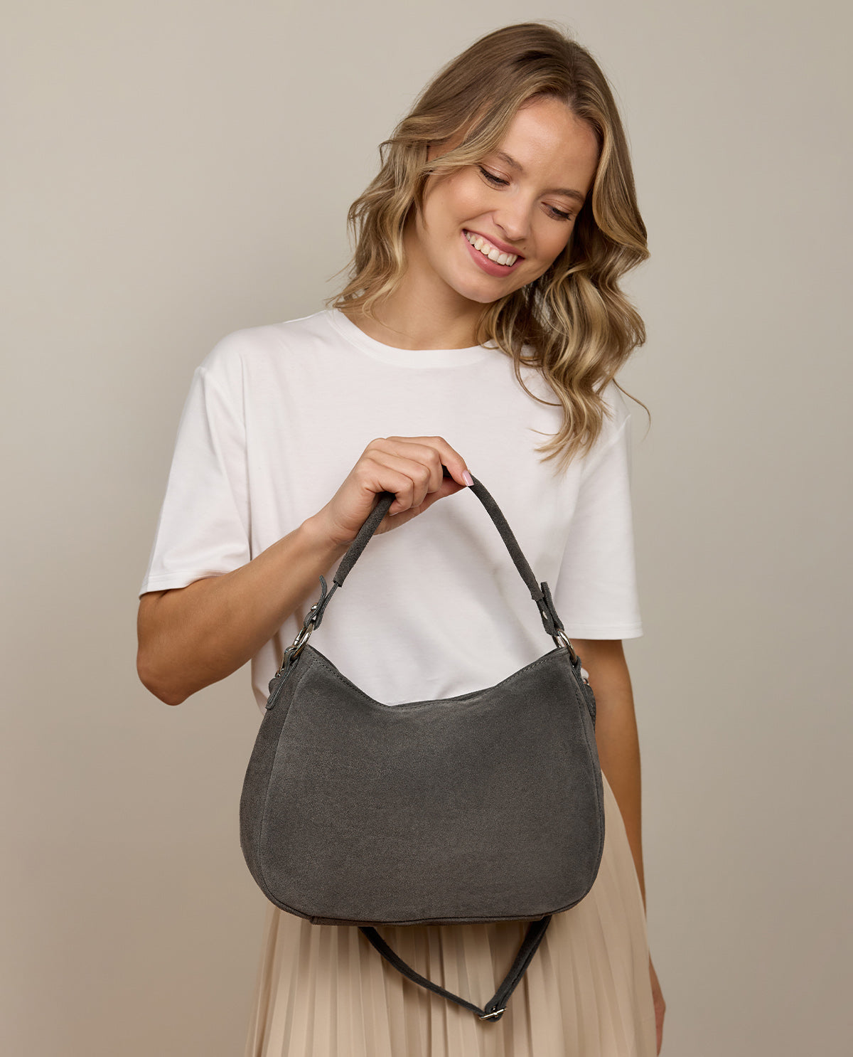 Die "Marcella" Handtasche ist der perfekte Begleiter für den modernen Alltag. Mit ihrem eleganten Design aus hochwertigem Leder und einem langen, verstellbaren Trageriemen, der abgenommen werden kann, vereint sie sowohl Stil als auch Flexibilität. Du kannst sie entweder als Umhängetasche oder mit dem zusätzlichen kurzen Trageriemen tragen – je nachdem, was Du gerade bevorzugst. Egal, ob für den Stadtbummel, das Business-Meeting oder den Abend mit Freunden, "Marcella" ergänzt Dein Outfit mit einer besonderen Note und sorgt dafür, dass Du immer gut organisiert bist.