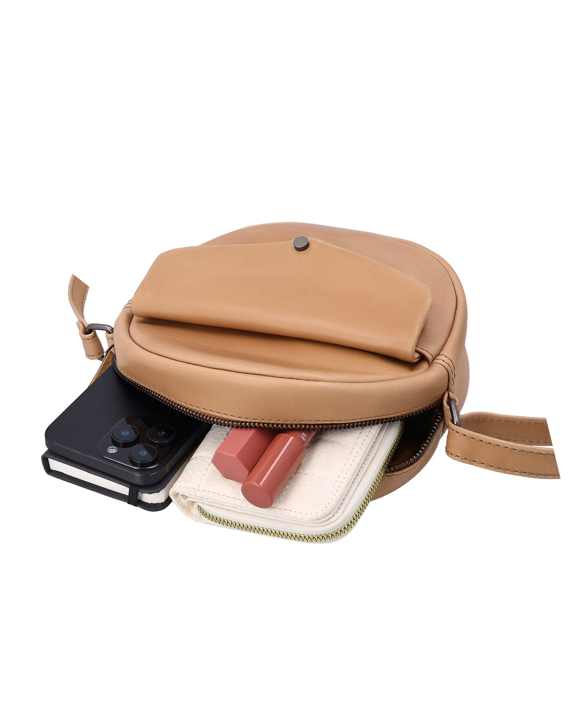 Die kleine Umhängetasche „Tora“ ist eine vielseitige Lederhandtasche für Damen, die Funktion und stilvolle Zurückhaltung verbinden möchten. Gefertigt aus hochwertigem Rindsleder in sanftem Beige, wirkt sie modern und angenehm zeitlos. Ein verborgenes AirTag-Fach sorgt für zusätzliche Sicherheit, während ein abnehmbarer Schlüsselanhänger Deine Essentials schnell griffbereit hält. Trotz ihrer kompakten Form bietet „Tora“ genau den Platz, den Du im Alltag brauchst – übersichtlich, leicht und immer passend.
