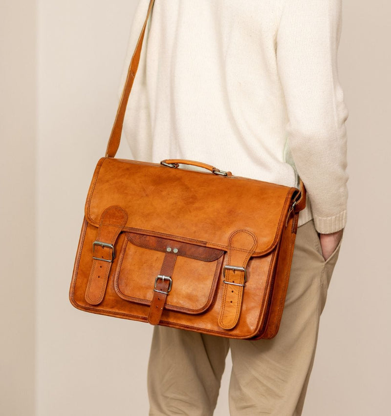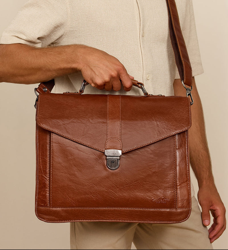 Bleib organisiert und stilvoll im Büro mit unserer Vintage-Tasche „Elijah“. Sie verfügt über ein Hauptfach und mehrere Innentaschen, die geräumig genug sind, um Deine Sachen sicher und organisiert aufzubewahren. Unsere stilvolle und hochfunktionale Arbeitstasche „Elijah” ist das perfekte Accessoire, das Deinen modernen professionellen Look ergänzt.