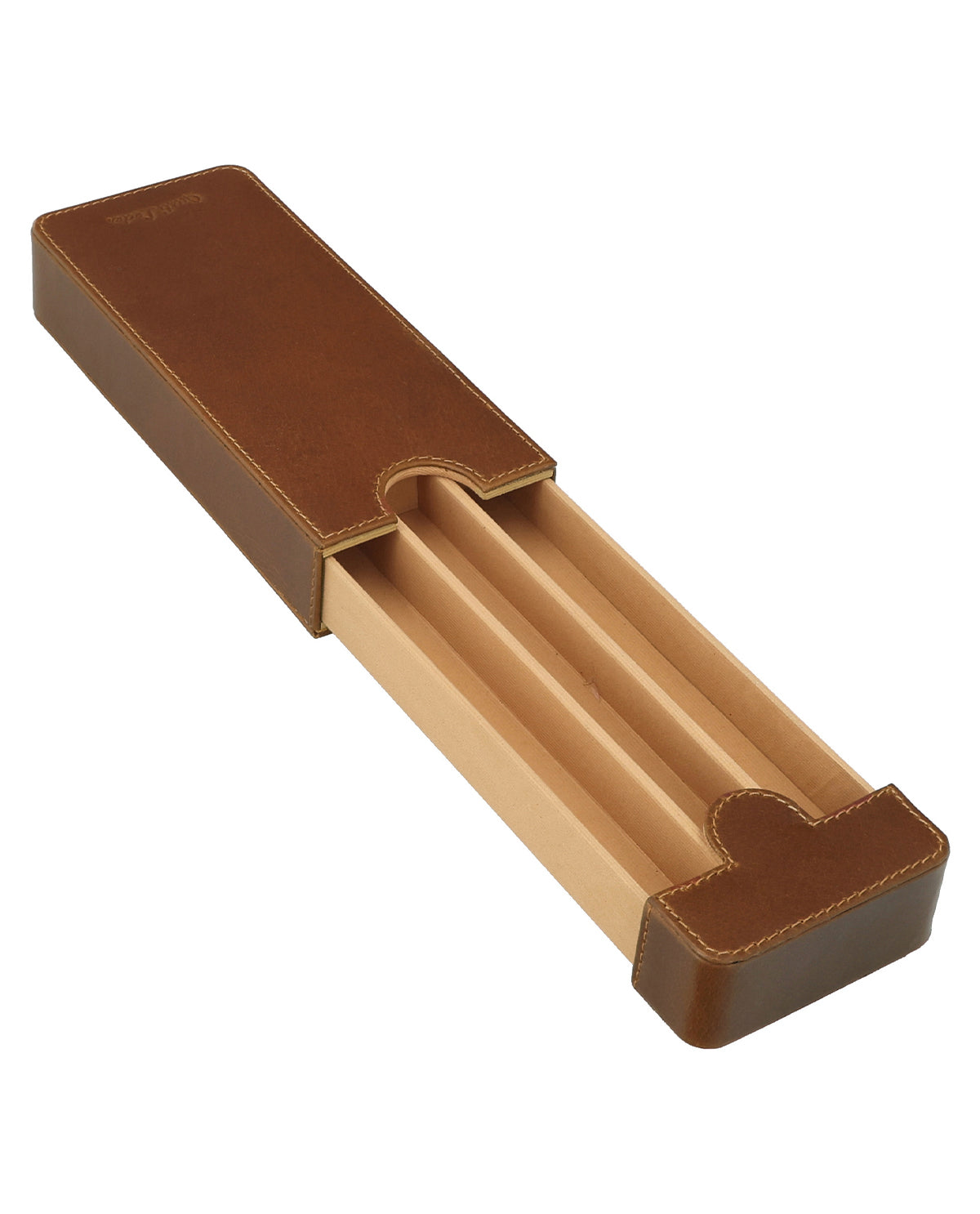 "Nojan" bietet drei längliche Fächer, in denen Du Deine Stifte, Füller oder Bleistifte sicher und übersichtlich aufbewahren kannst. Die Schutzklappe wird einfach über die Fächer gelegt und sorgt dafür, dass Deine Schreibutensilien stets gut geschützt bleiben – ideal für unterwegs oder im Büro. Das robuste Leder verspricht Langlebigkeit, während die weiche Innenverarbeitung Deine Accessoires sicher umschließt. Mit "Nojan" setzt Du auf Qualität, Funktionalität und ein edles Design, das den Alltag stilvoll begleitet.