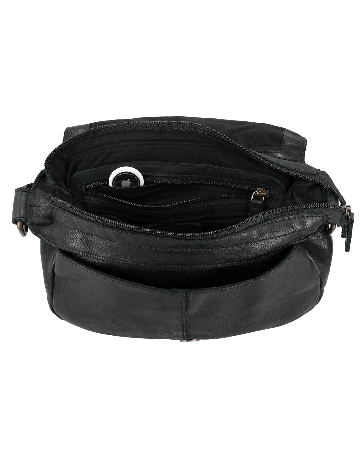 Die kleine Handtasche „Aliya“ ist eine schwarze Lederhandtasche für Damen, die durch ihre geflochtene Oberfläche sofort ins Auge fällt. Das gewaschene Rindsleder wirkt angenehm weich und verleiht der Tasche eine entspannte, hochwertige Ausstrahlung. Bereits im Alltag zeigt sich „Aliya“ funktional: Ein verstecktes AirTag-Fach sorgt für zusätzliche Sicherheit, während der verstellbare Schulterriemen flexible Tragemöglichkeiten bietet. Die Kombination aus Magnetverschluss an der Front und Reißverschluss im Hauptfach verbindet Komfort mit einem sicheren Gefühl unterwegs.