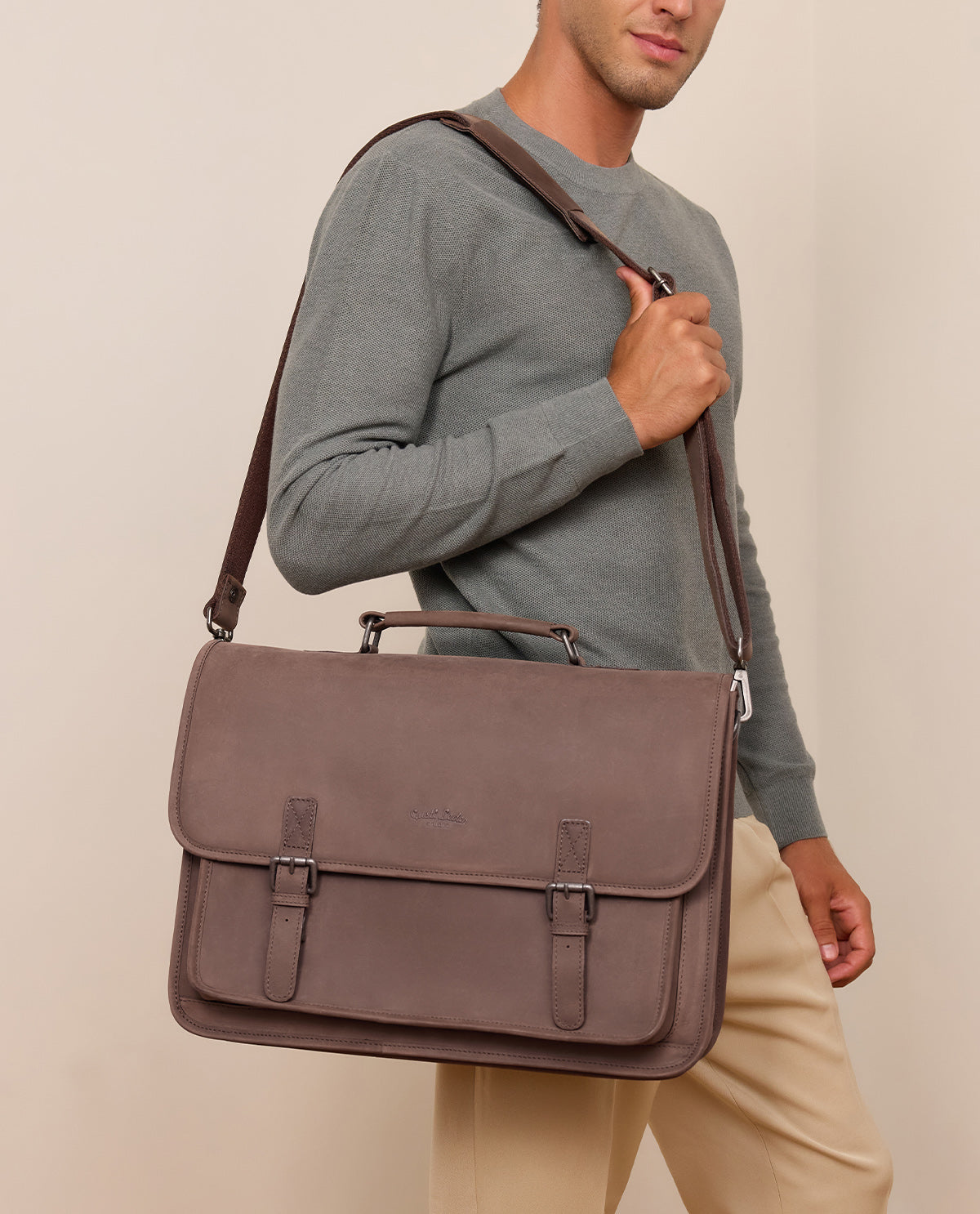 Ohne Zweifel, "Elmar" hat all das, was Du von einer Leder-Umhängetasche erwartest: der klassische Look kombiniert mit einem unaufdringlichen Finish – je nach Farbe im angesagten Used-Look oder in zeitlos-elegantem Glattleder. So erweist sich "Elmar" als gleichermassen passend für einen Casual-Work-Day wie auch für das anstehende große Businessmeeting. Und wer noch immer nicht von "Elmar" überzeugt ist, den begeistert diese klassische Aktentasche aus hochwertig verarbeitetem Leder spätestens durch ein enormes und großzügiges Platzangebot dank der zahlreichen Fächer.