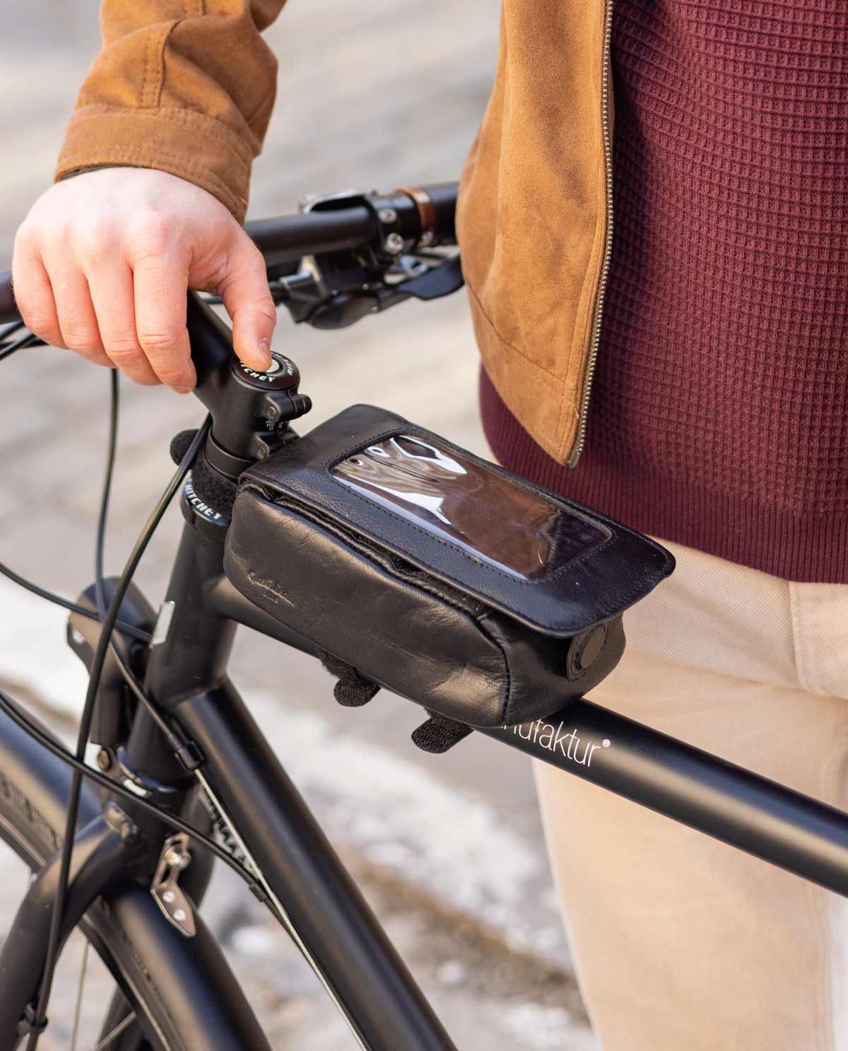 Rahmentasche Lenkertasche Handyhalterung Navi-Tasche Fahrradtasche Schwarz Leder
