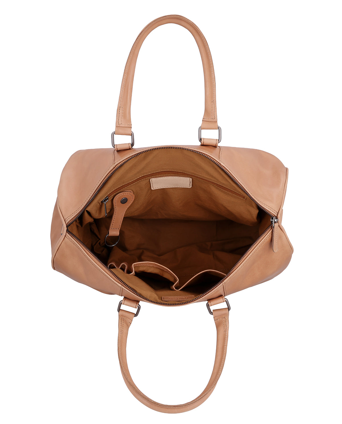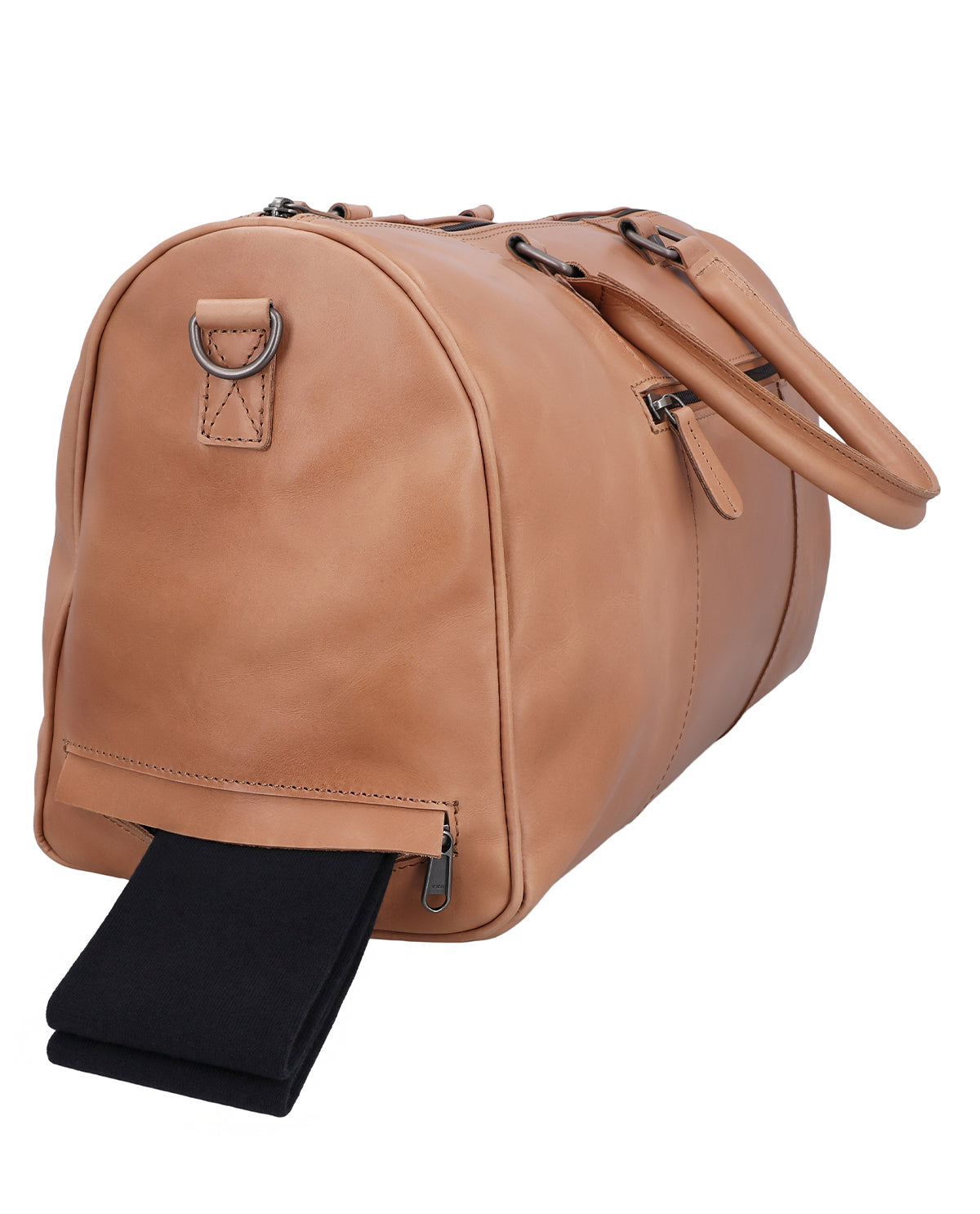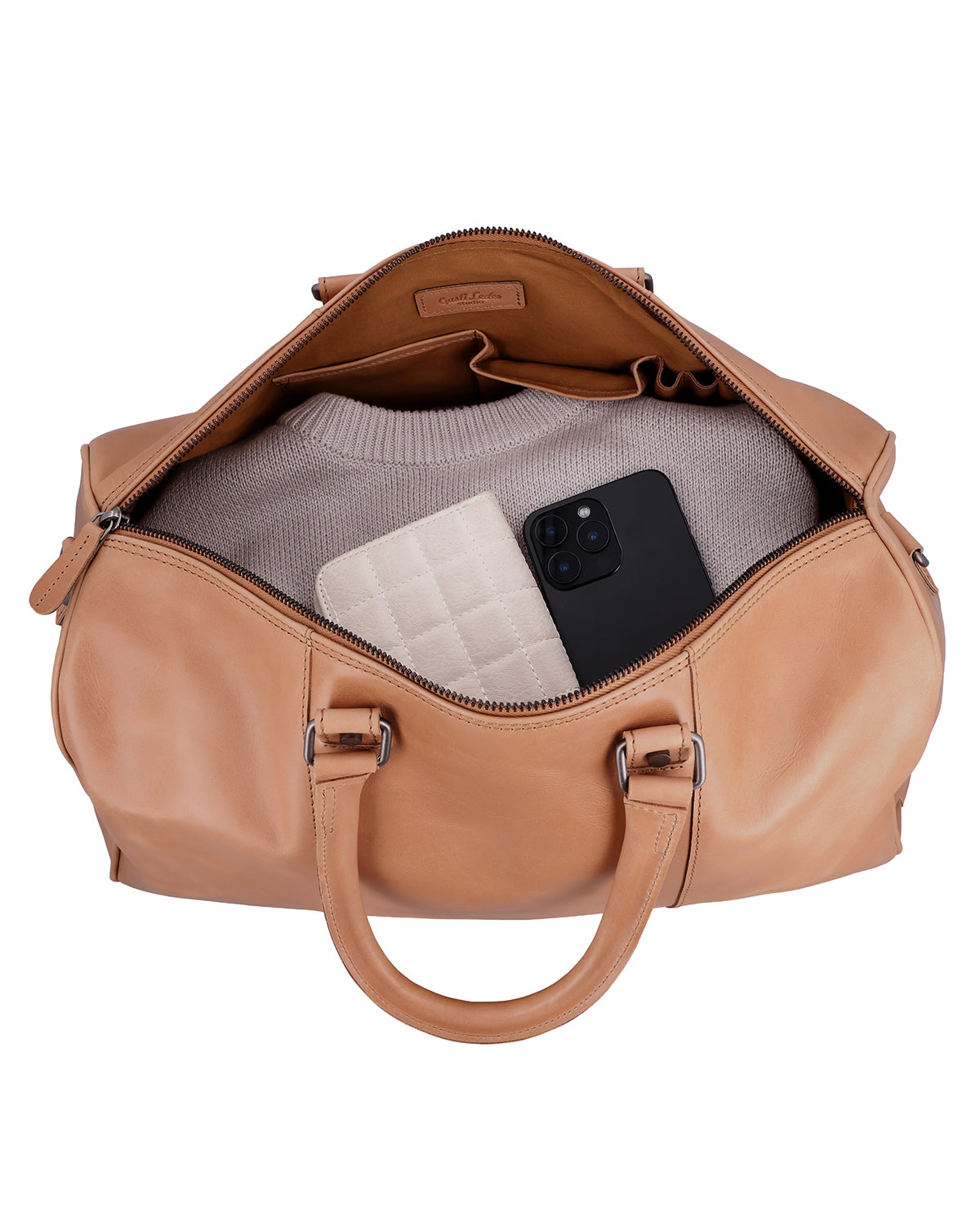 Die Reisetasche „Joris“ aus braunem Leder ist für Damen und Herren gemacht, die unterwegs den Überblick behalten möchten. Als hochwertige Lederreisetasche verbindet sie klassisches Design mit smarten Extras, die auf Reisen wirklich zählen. Ein verstecktes AirTag-Fach sorgt für zusätzliche Sicherheit, während ein herausnehmbarer Schlüsselanhänger Deine wichtigsten Dinge sofort griffbereit hält. Besonders praktisch ist das separate Nassfach mit wasserabweisendem Futter – ideal getragene Kleidung die getrennt verstaut werden soll. „Joris“ ist eine Ledertasche, die Ordnung schafft und Dir unterwegs spürbar Arbeit abnimmt.