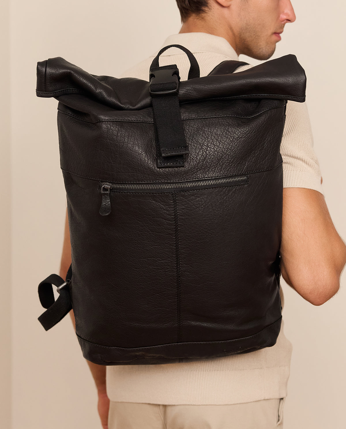 Ob für Schule, Uni oder Arbeit – unser Rolltop-Rucksack "Mattis" passt einfach immer. Denn er weiß mit seiner Flexibilität, seinem hohen Tragekomfort und Platzangebot zu überzeugen. Dieser klassisch-robuste Daypack aus schwarzem Büffelleder fällt dabei vor allem durch sein trendiges Rolltop auf – ein Look, an dem man momentan einfach nicht vorbeikommt.