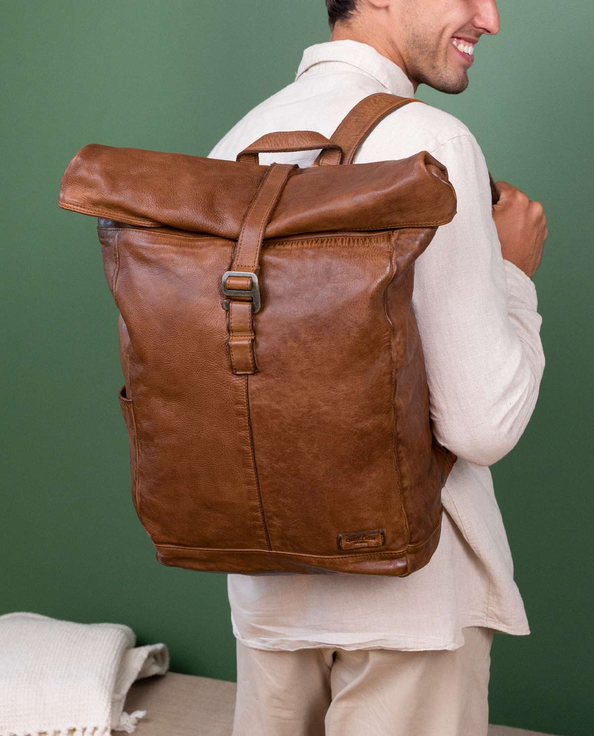 Ob für Schule, Uni oder Arbeit – unser Rolltop-Rucksack „Bendik“ passt einfach immer. Inspiriert durch Berlin überzeugt er mit Flexibilität, hohem Tragekomfort und großzügigem Platzangebot. Dieser klassisch-robuste Daypack aus honigbraunem Leder fällt besonders durch sein trendiges Rolltop auf – ein Look, an dem man momentan einfach nicht vorbeikommt.