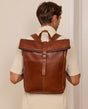 "Henning" ist ein mittelgroßer Rolltop-Rucksack aus widerstandsfähigem Büffelleder, der durch seinen schmalen Schnitt geradezu dafür gemacht ist, um im Großstadtgewirr oder der Enge der S-Bahn zur Rush Hour abzuliefern. Durch seine durchdachte Aufteilung bietet er Dir nämlich ausreichend Raum, um ohne Weiteres Deine DIN A4-Unterlagen, das 15"-Notebook, eine ganze Hand voll Bücher und eine große Trinkflasche im geräumigen Hauptfach zu verstauen, während Dir ein zusätzliches Steckfach sowie ein Reißverschluss-Innenfach dabei helden, Deine Habe mit System zu strukturieren, sodass alles seinen festen Platz findet. Und sollte doch mal etwas auslaufen, schützt der helle Innenstoff aus wasserfestem Polycotton das Leder Deines Rucksacks vor Nässe oder gar vor Fleckenbildung. Das seitliche Reißverschlussfach außen bietet Dir derweil Platz für all die Dinge, die Du immer mal wieder zwischendurch benötigst, während die gepolsterte Rückenpartie wie auch die Innenseite der breiten Schulterriemen mit braunem Canvas bespannt sind und Dir so eine Extraportion Tragekomfort bieten.