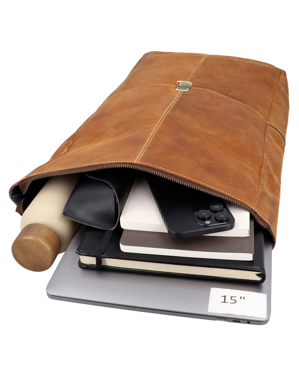 Rucksack Lederrucksack Vintage Damen Herren Berliner Großstadt Flair Braun Leder 13L