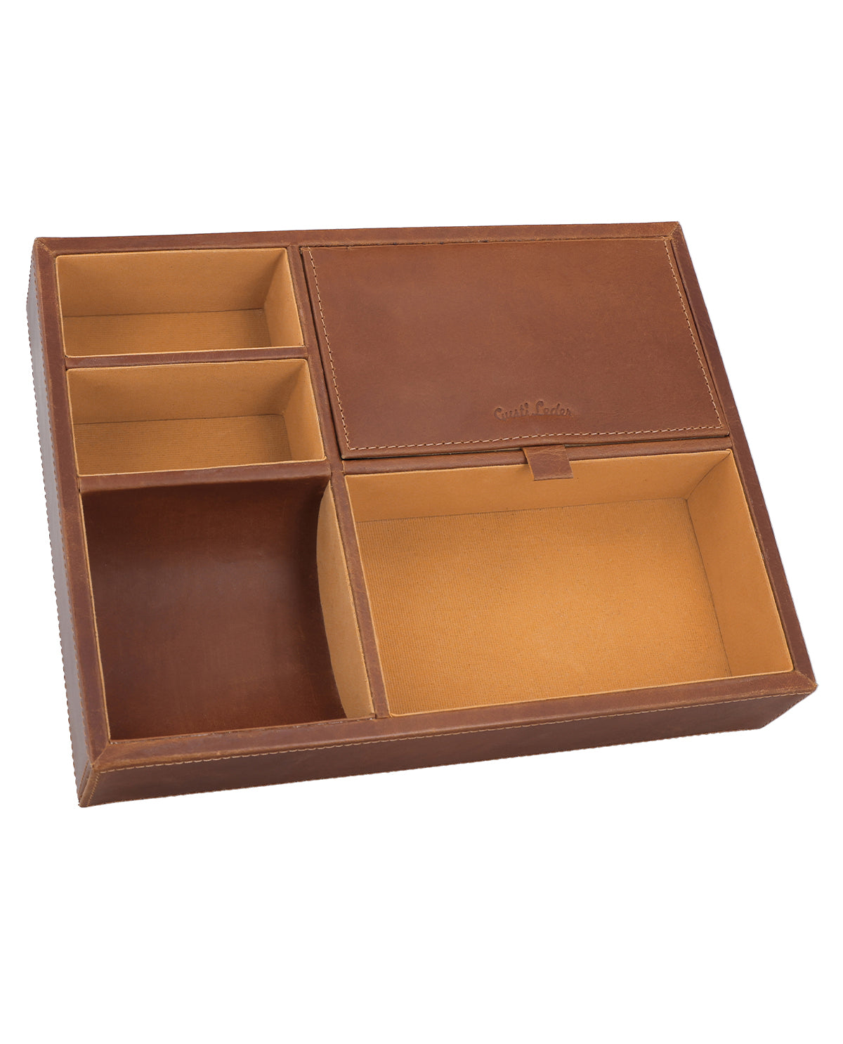 Ein besonderes Highlight von "Bianka" ist das Fach mit aufklappbarem Deckel, das sich ideal zur diskreten Aufbewahrung kleiner Gegenstände eignet. Das Innenleben ist mit einem weichen, hellen Stoff ausgekleidet, der nicht nur für einen harmonischen Kontrast sorgt, sondern auch Deine Accessoires sanft schützt. Ob im Homeoffice, im Büro oder auf dem Schreibtisch zu Hause – "Bianka" ist mehr als nur ein Organizer. Sie ist ein stilvolles Statement für Ordnung, Qualität und Liebe zum Detail.