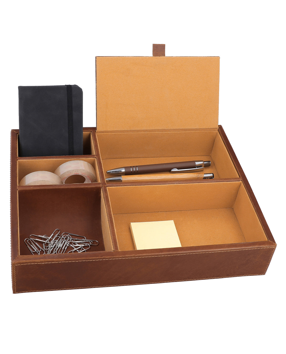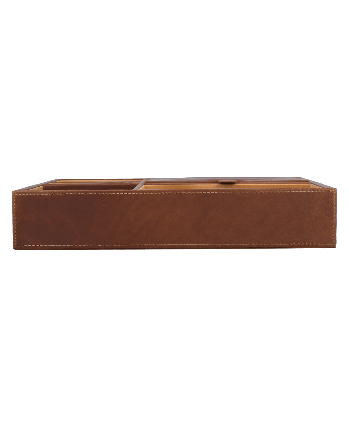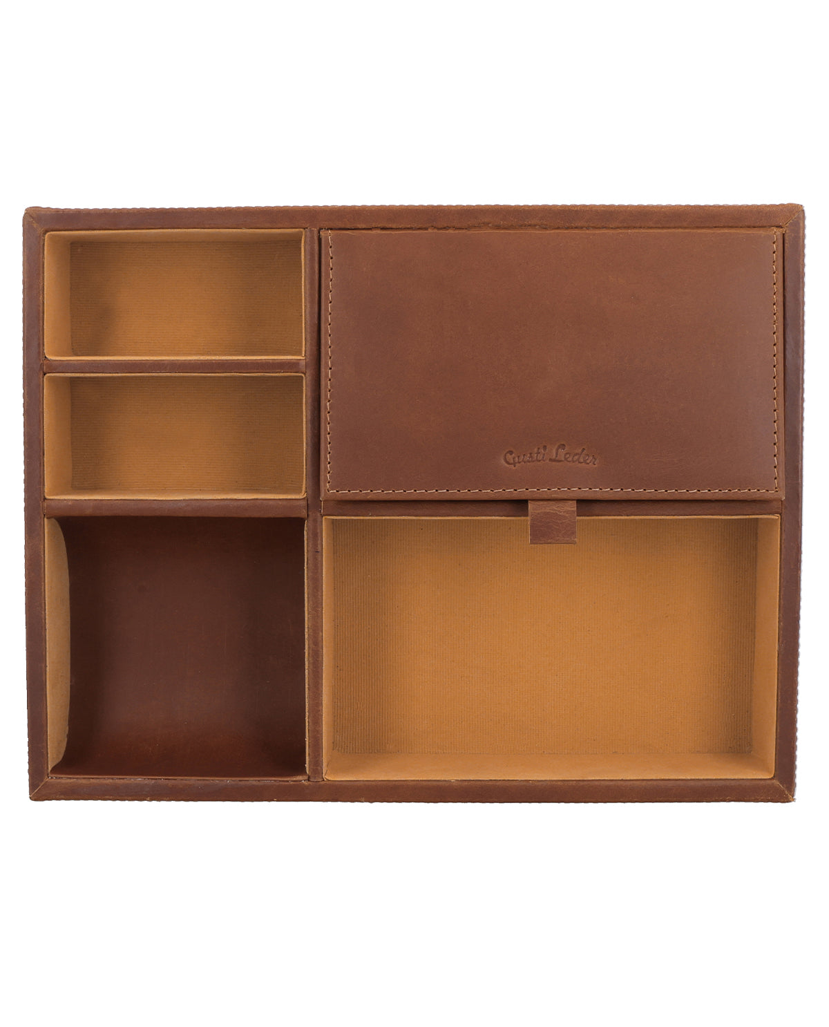 Mit "Bianka" bringst Du Eleganz und Struktur auf Deinen Schreibtisch. Gefertigt aus hochwertigem Leder mit einer glatten Oberfläche, vereint dieser Organizer Funktionalität und zeitloses Design. Die unterschiedlichen offenen Fächer in verschiedenen Größen bieten Dir die Möglichkeit, Stifte, Notizzettel, Brillen oder andere persönliche Gegenstände übersichtlich zu sortieren. So bleibt Dein Arbeitsplatz aufgeräumt, während das edle Leder Deinem Büro eine warme, luxuriöse Note verleiht – perfekt für alle, die Organisation mit Stil verbinden möchten.