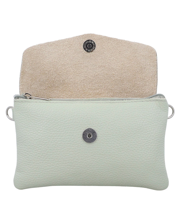 Umhängetasche Ledertasche Crossbody Tasche Clutch Handtasche Damen Hellblau Leder - Made in Italy