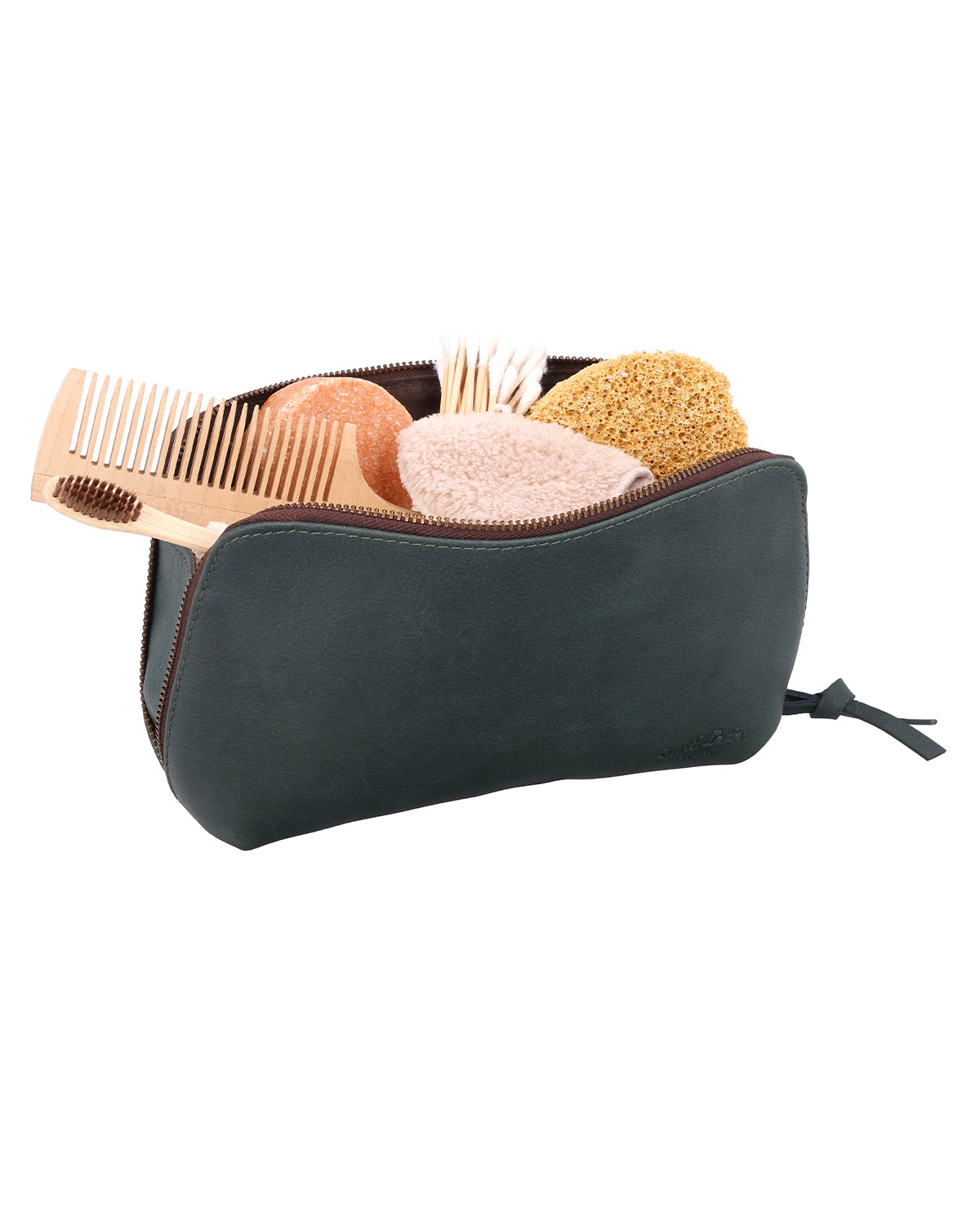 Aus hochwertig verarbeitetem und strapazierfähigem Leder bietet "Eli" den perfekte Raum für all Deine Hygieneartikel. Das geräumige Hauptfach im Inneren bietet genügend Platz für Deo, Shampoo, Conditioner, Zahncreme und -bürste uvm. Abgerundet wird das Design von "Eli" mit einem passendem Reißverschluss. So bleibt alles beisammen und ist optimal verstaut.
