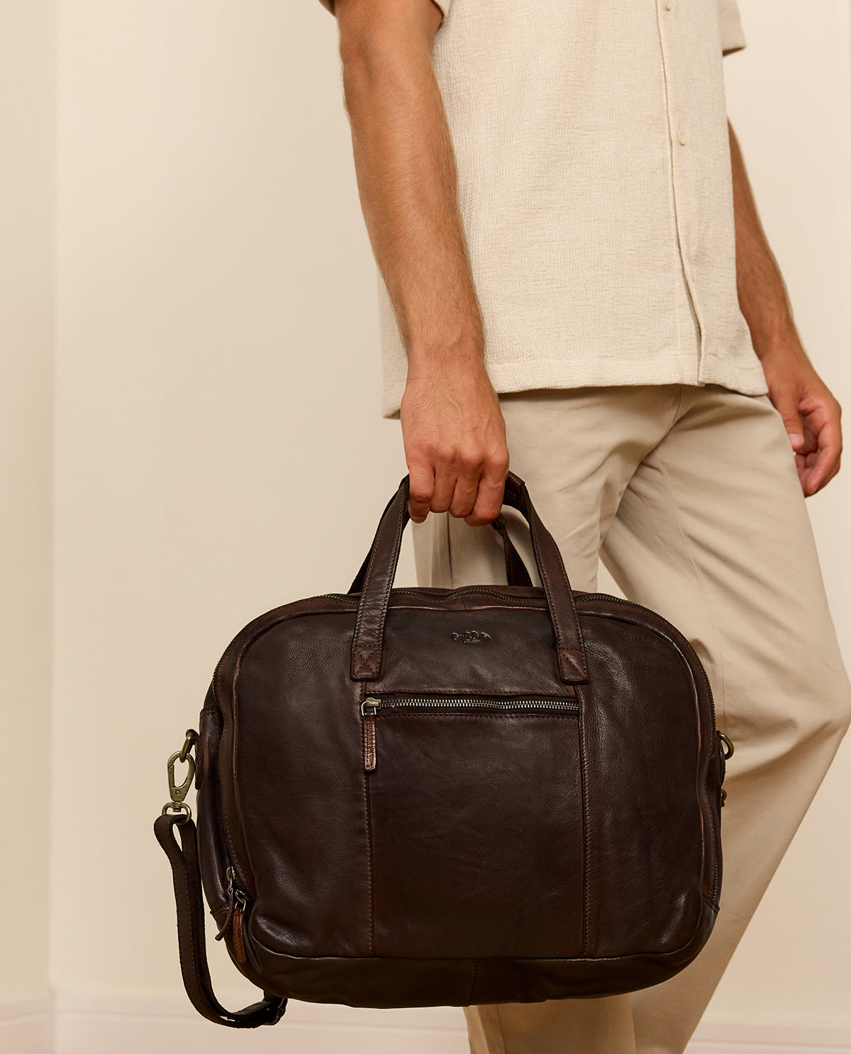 There's plenty of space inside this briefcase for your laptop, documents, notebook and more. Keep your laptop safe in the padded laptop compartment. Organise your other belongings in the pockets and compartments inside this bag. Adjust the strap and wear this satchel comfortably over your shoulder.