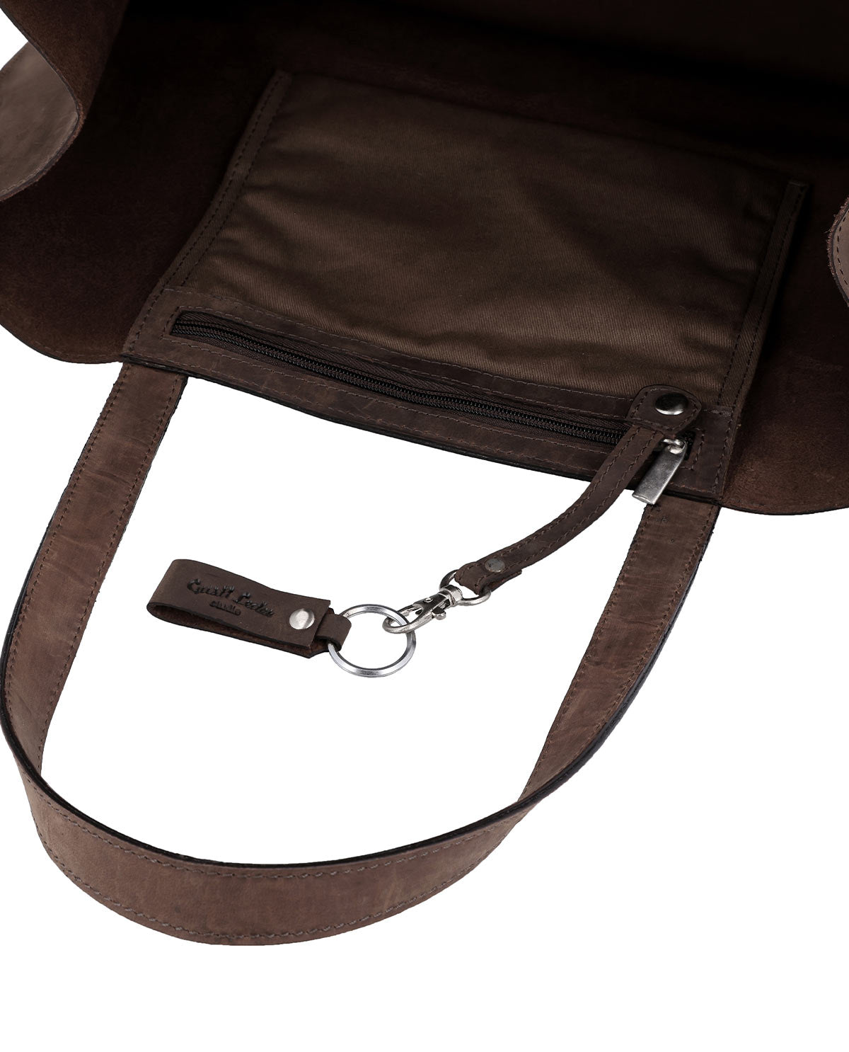 Inside, the "Agatha" shopper impresses with its clear organization. A single zippered compartment reliably protects your valuables, while an integrated AirTag compartment gives you additional security. The practical key strap ensures that you can find your keys immediately. The design is rounded off by a discreet engraved patch that makes "Agatha" your personal favorite – functional, tidy, and well thought-out down to the last detail.
