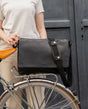 You'll turn heads at the office with this high-quality black leather satchel on your shoulder. It's made of sturdy cowhide leather that gives the bag an elegant yet rustic look. There's plenty of space for your important documents, laptop, tablet, folders, and more in this satchel.