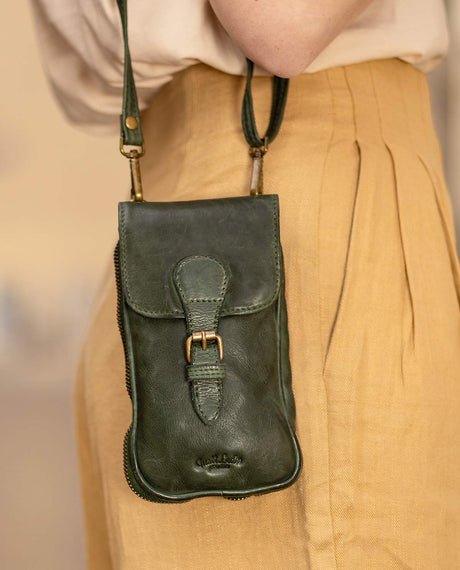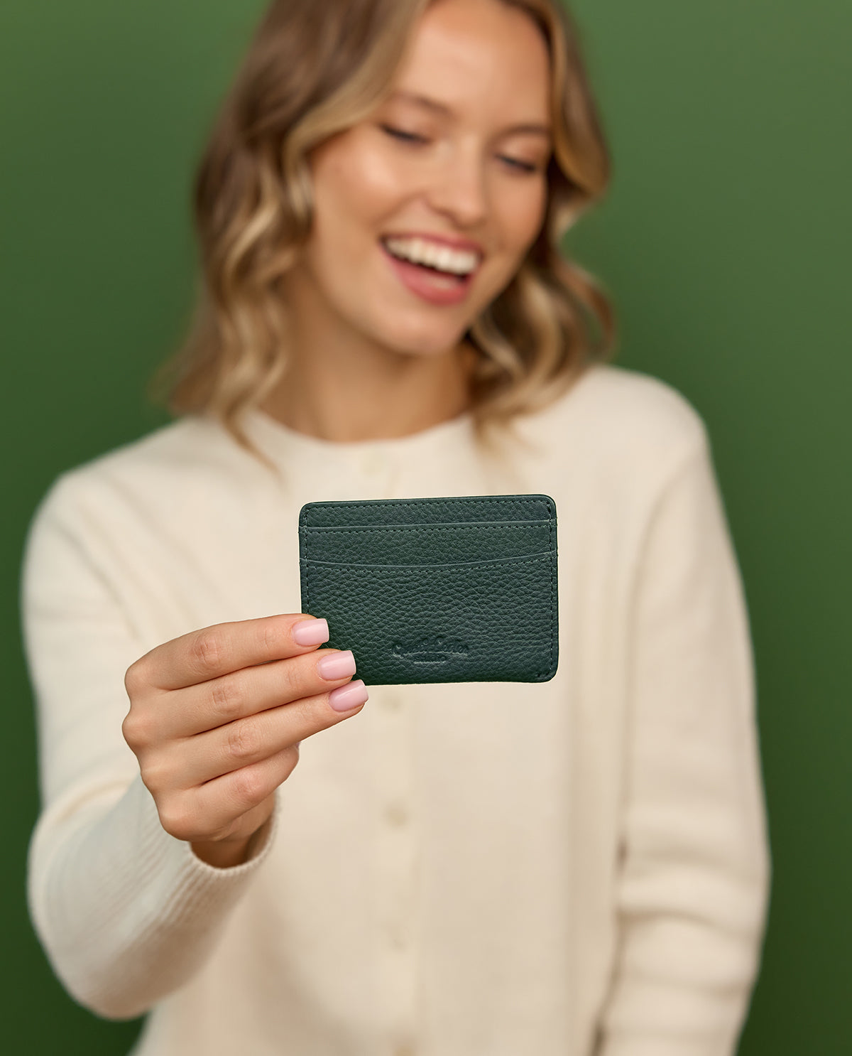 Practical and stylish - the "Qani" card case made of dark green leather