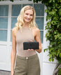 Please note: You can use a total of 30 characters, max. 15 per line. The exact colour of the engraving may vary slightly depending on the product and leather. We sometimes use white text in the preview so that you can visualise better what your engraving will look like. If there's only an engraving patch in the preview, your text will be engraved on the patch which will be sewn inside your bag. If the product is visible in the preview, the engraving will be placed as shown in the preview image.