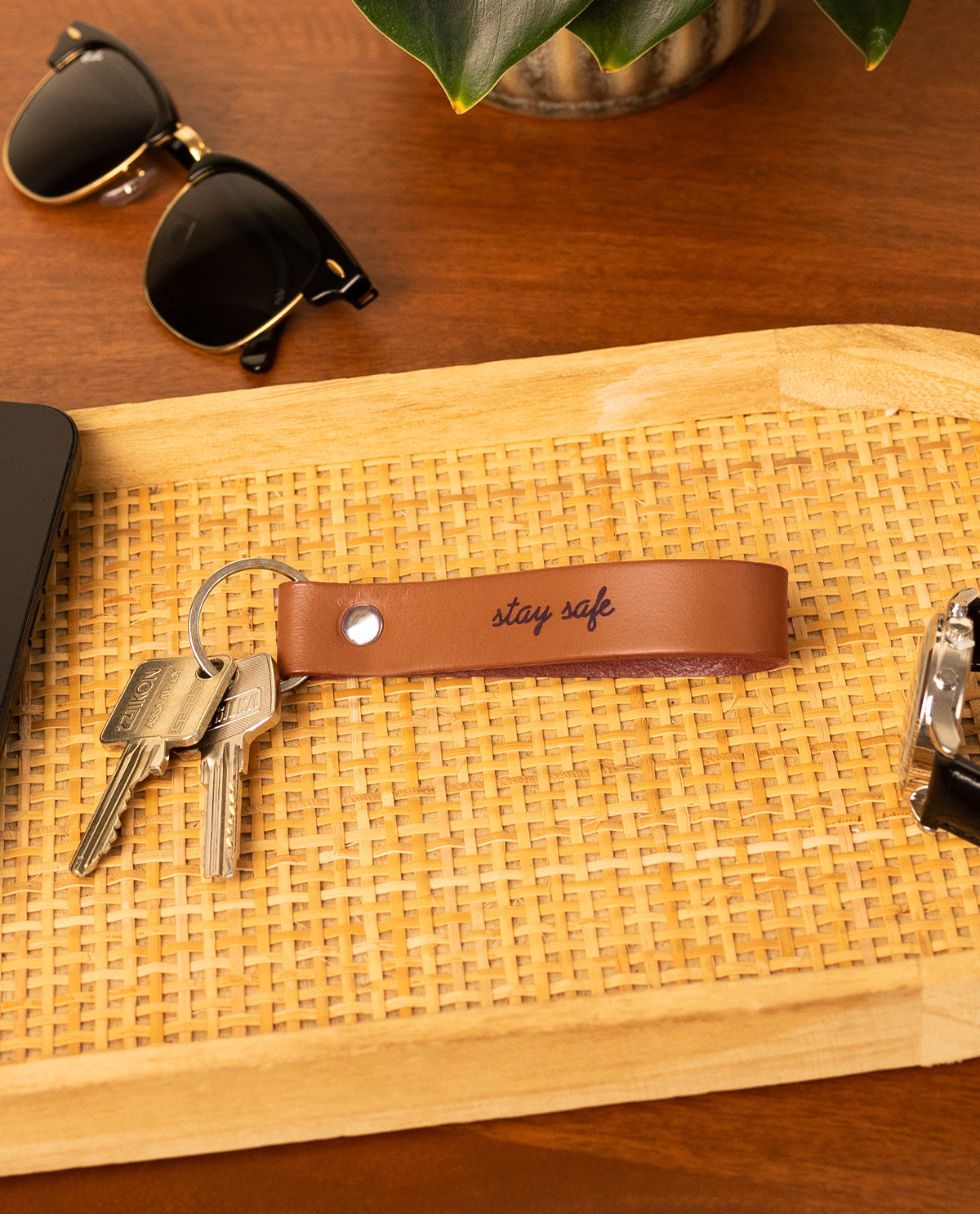 Our stylish keychain comes in many different colors - surely your favorite color is included. You can attach as many keys and carabiners as you like to the keyring. With a personalized engraving, your friend not only receives a practical gift but also a very personal one. Immortalize the shared motto or leave a nice message on the leather keychain "Shelton".