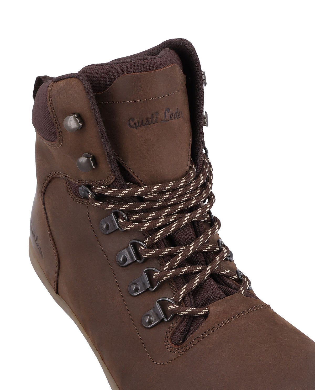 The "Dolf" shoes also impress with their functional, well-thought-out details. The high-quality leather insole ensures a pleasant foot climate and noticeably enhances your wearing comfort. The robust black rubber sole, which combines stability and durability, is responsible for a secure grip on different surfaces. The sturdy lacing with metal eyelets is also particularly practical, allowing you to achieve a secure fit and precise adjustment to your foot. This means you can enjoy a balanced feeling of security, comfort, and natural freedom of movement with every step. These leather boots are ideal for you if you value quality, comfort, and a confident appearance.