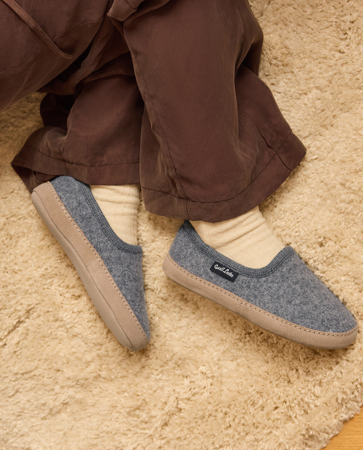 The outsole made of genuine leather provides a flexible base and quiet steps on all floor coverings, while the padded insole made of virgin wool conveys a springy walking sensation, as if you were walking on clouds. The slippers are manufactured in Europe – in Austria and Hungary – and stand for sustainable processing and natural materials. A small fabric label with the white "Gusti Leather" logo and a woven size label in the heel area complete the high-quality workmanship. With "Marah" you enjoy comfort, style, and environmental awareness in one shoe.