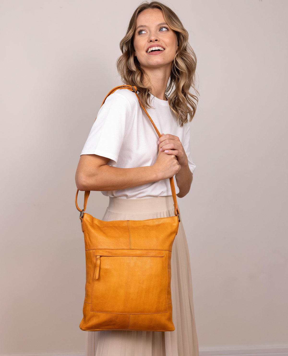 The spacious main compartment of this high-quality crafted shoulder bag made of super soft cowhide, in which you can easily store documents up to a size of DIN A4, as well as the additional slip pockets and the zipper interior pocket offer you an optimal overview of the essentials in your bag without having to rummage for a long time. And to ensure that everything you carry with you is safely stored and well protected, "Maola" closes with a wide sturdy zipper. In addition, another zipper pocket is integrated into the design on the front, where you can always keep smaller items like a smartphone or headphones within easy reach. The length-adjustable shoulder strap provides the necessary comfort and flexibility, so you can wear "Maola" either as a shoulder bag with a short strap or as a classic crossbody bag.