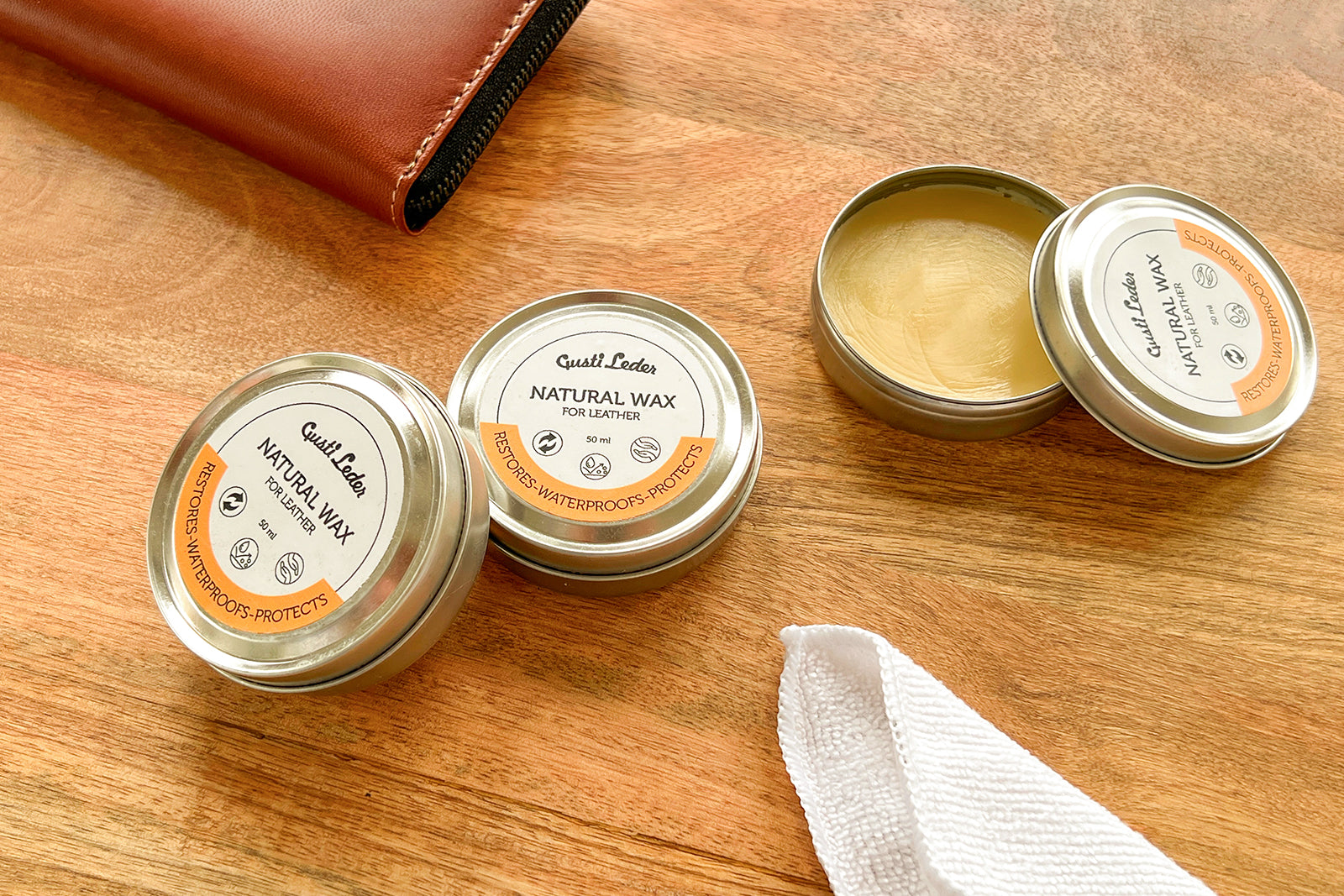- Utilizza i prodotti per la cura della pelle Gusti, come il balsamo per la pelle e la cera d'api, per mantenere i tuoi accessori in condizioni ottimali.